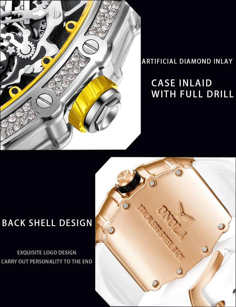 2022 New Men's Watch ONOLA Fashion Luxury Diamond Inlaid Design Quartz Waterproof Tape Watches Men Relogio Masculino Clock