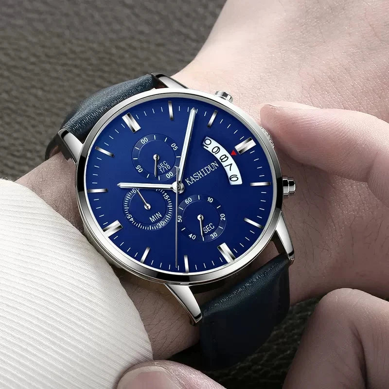 Fashion Men's Business Sports Quartz Watch Leather Strap