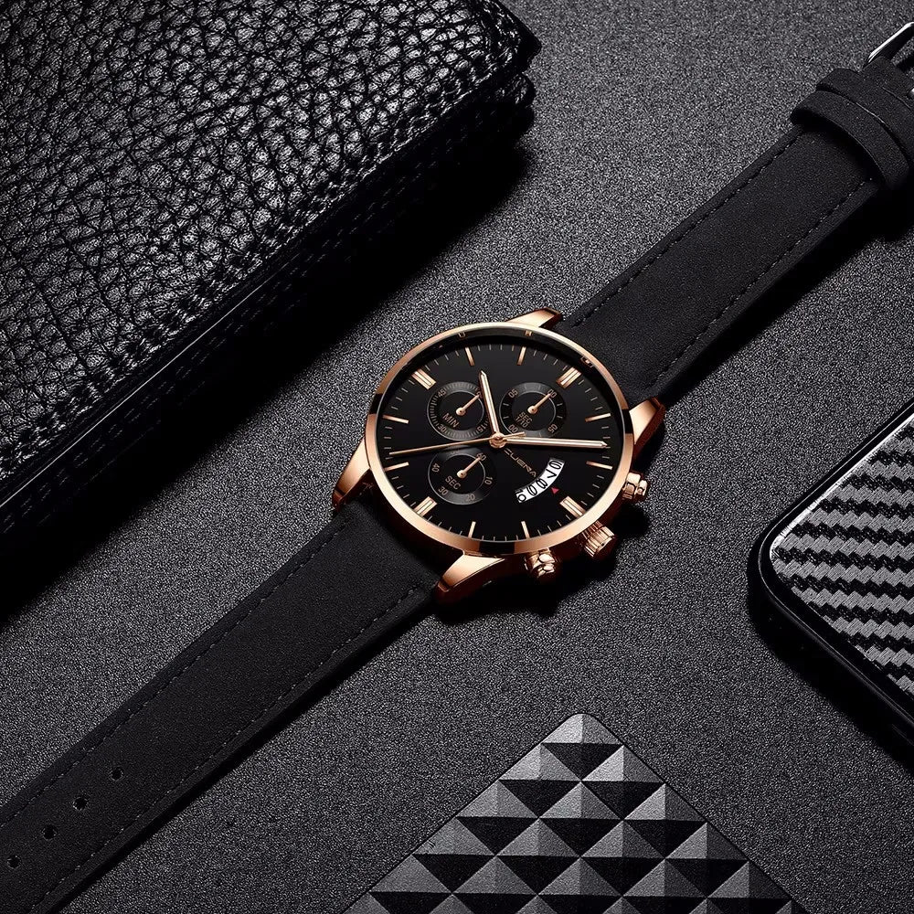 2023 Fashion Men's Watch Brand Luxury Male Quartz Watches Minimalist Casual Leather Strap Digital Calendar Wristwatch Men Clock
