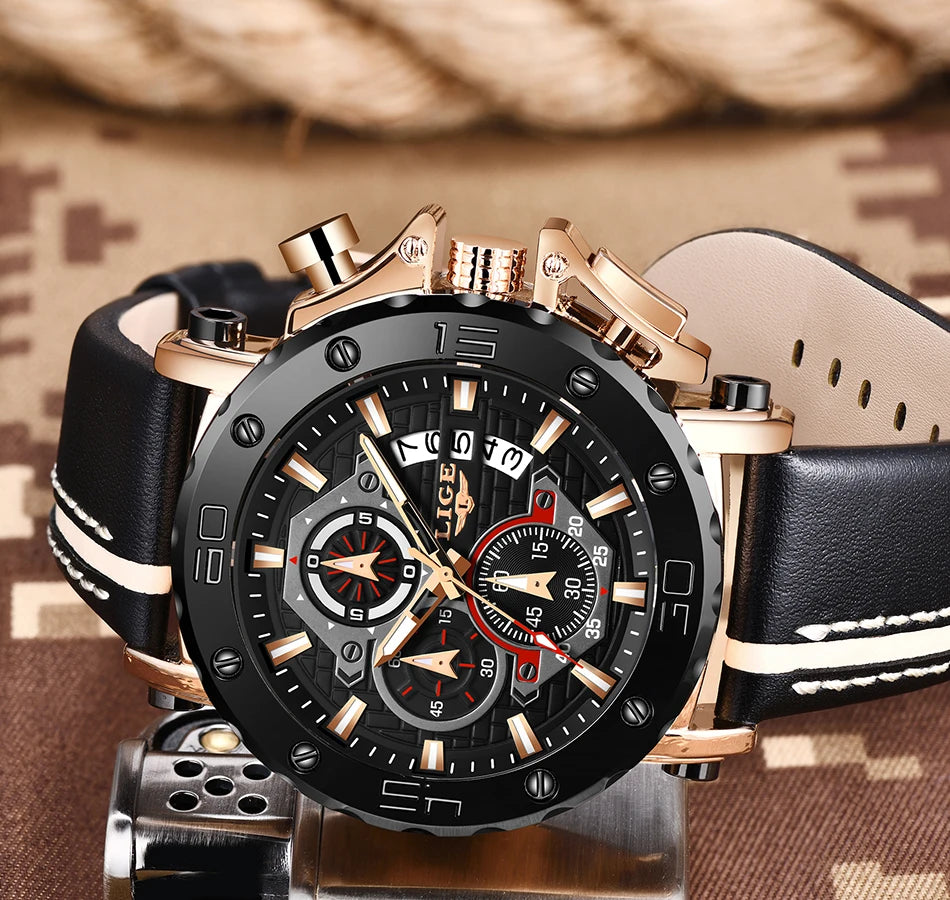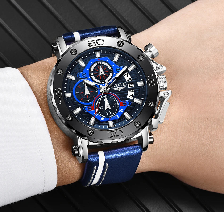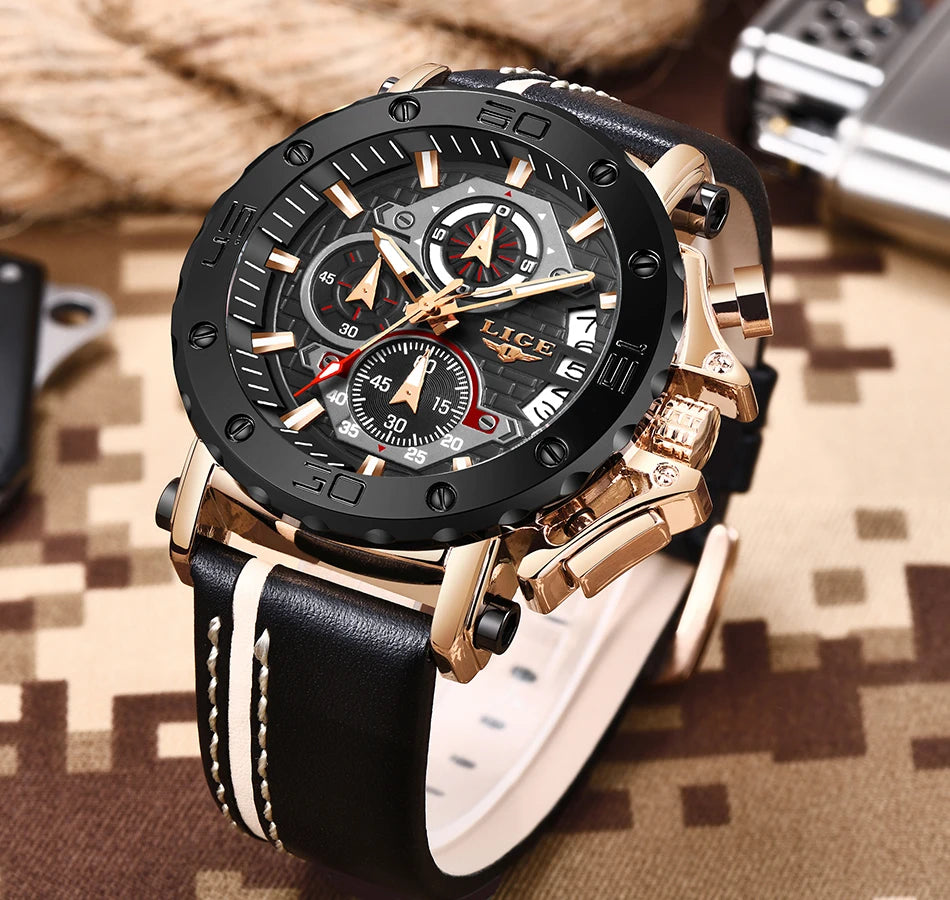 2025 LIGE New Mens Watches Top Brand Luxury Big Dial Military Quartz Watch Leather Waterproof Sport Wristwatch Relogio Masculino