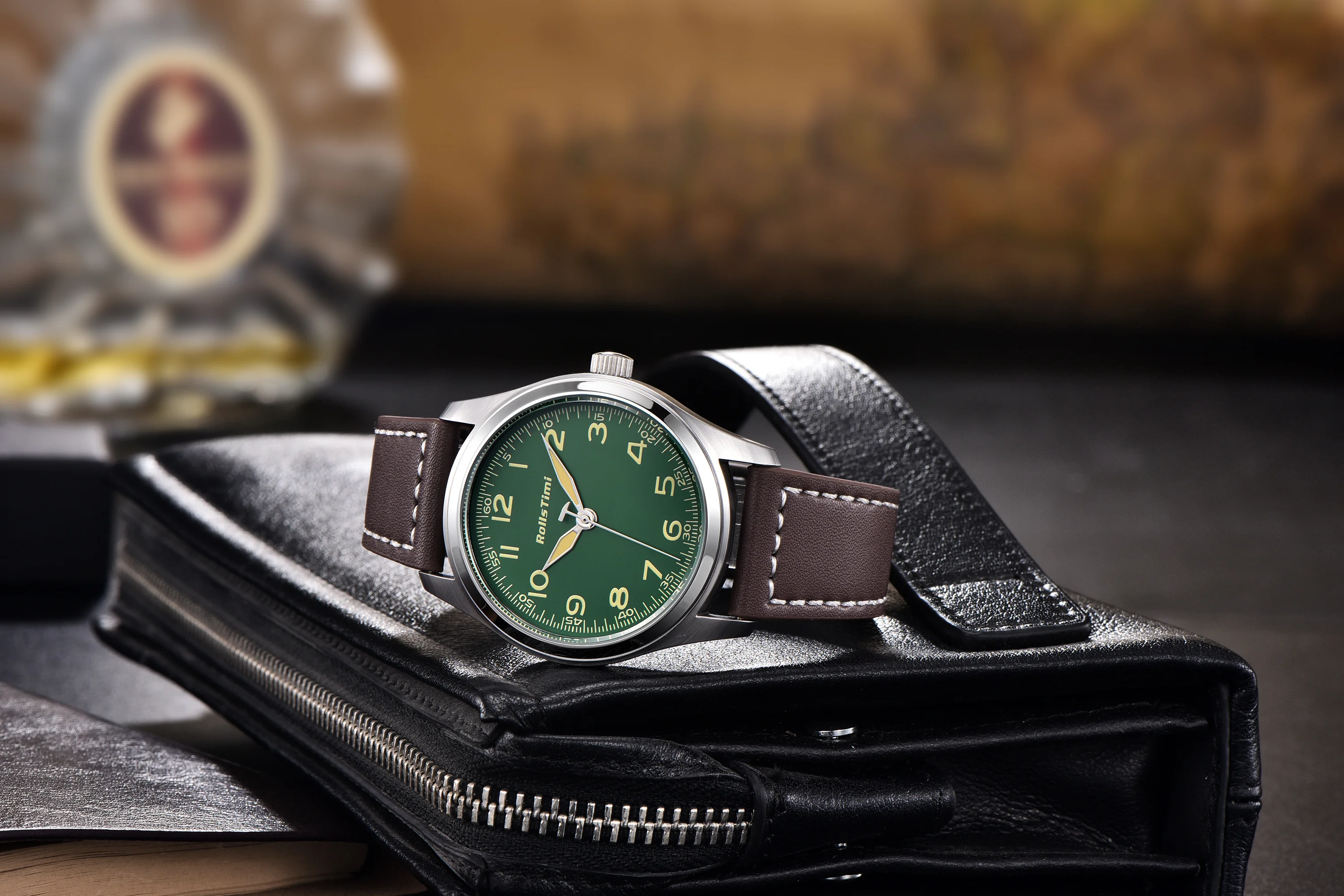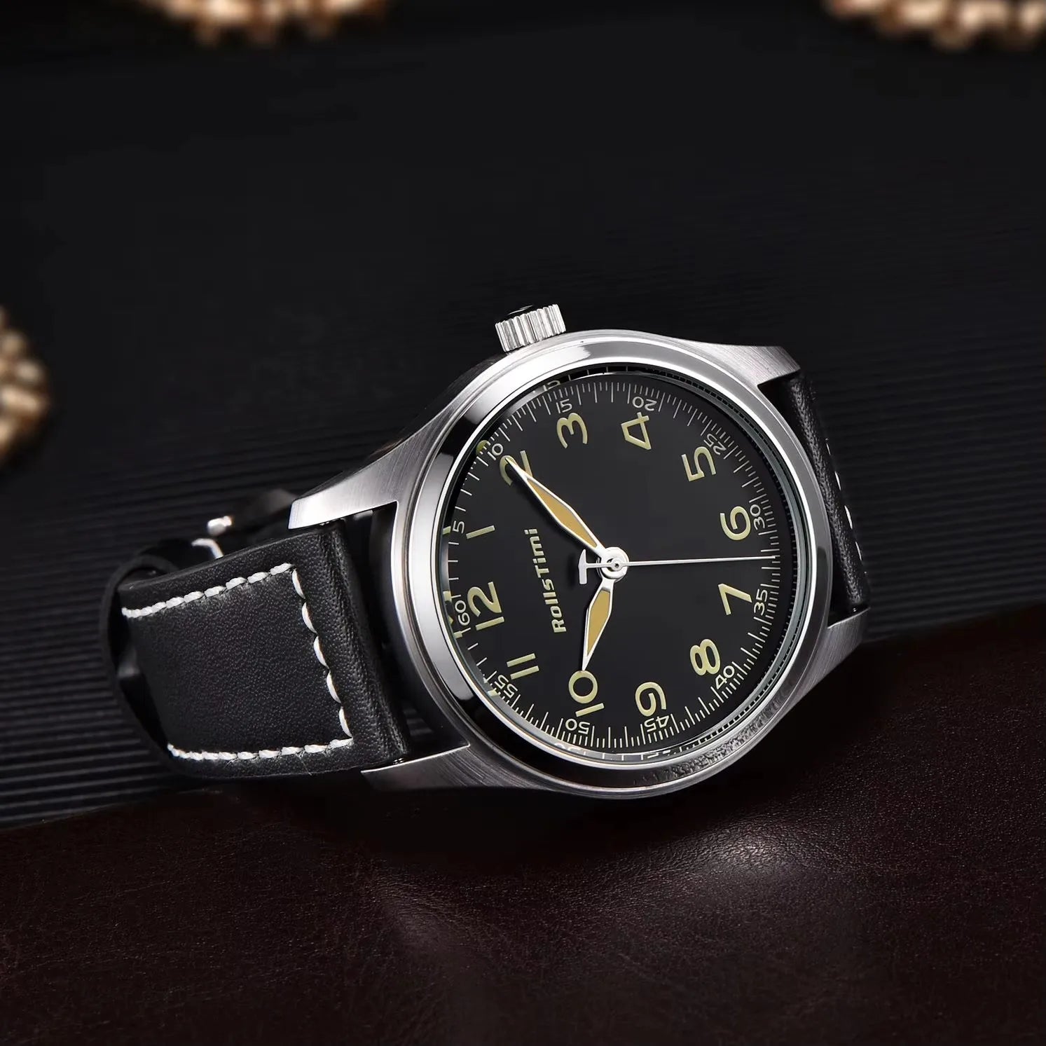 2025 New Rollstimi Men's Brand Watches Quartz Sapphire Mirror Men Simple Luminous Waterproof Wristwatch Business Leather Clock