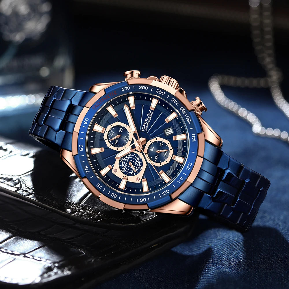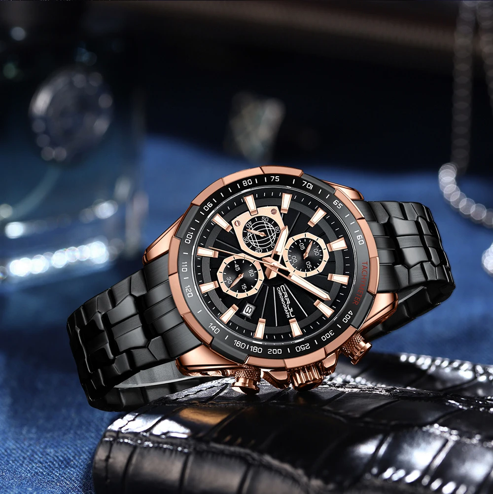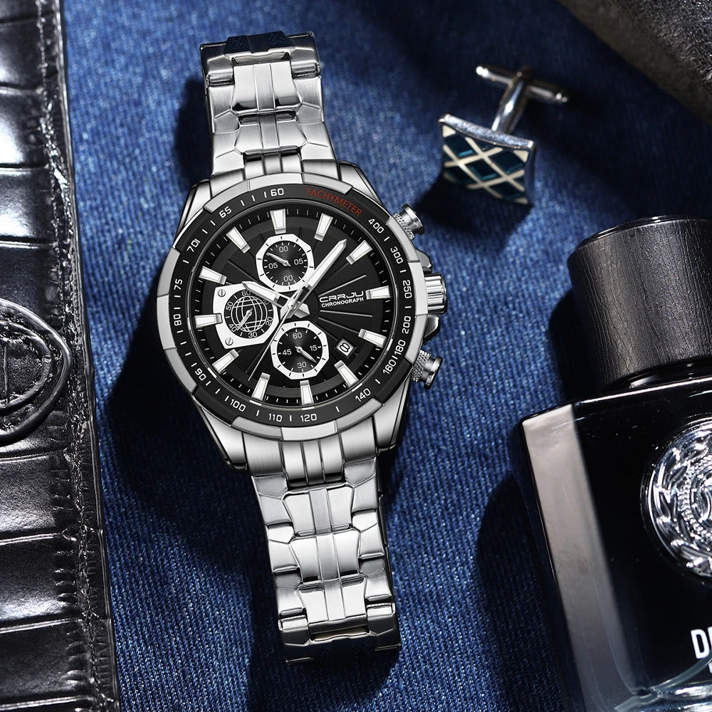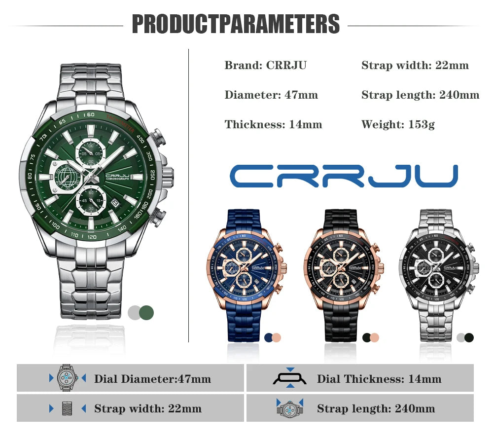 CRRJU Men's Watches Fashion Business Multifunction Quartz Chronograph with Auto Date and Luminous Hands Relogio Masculino