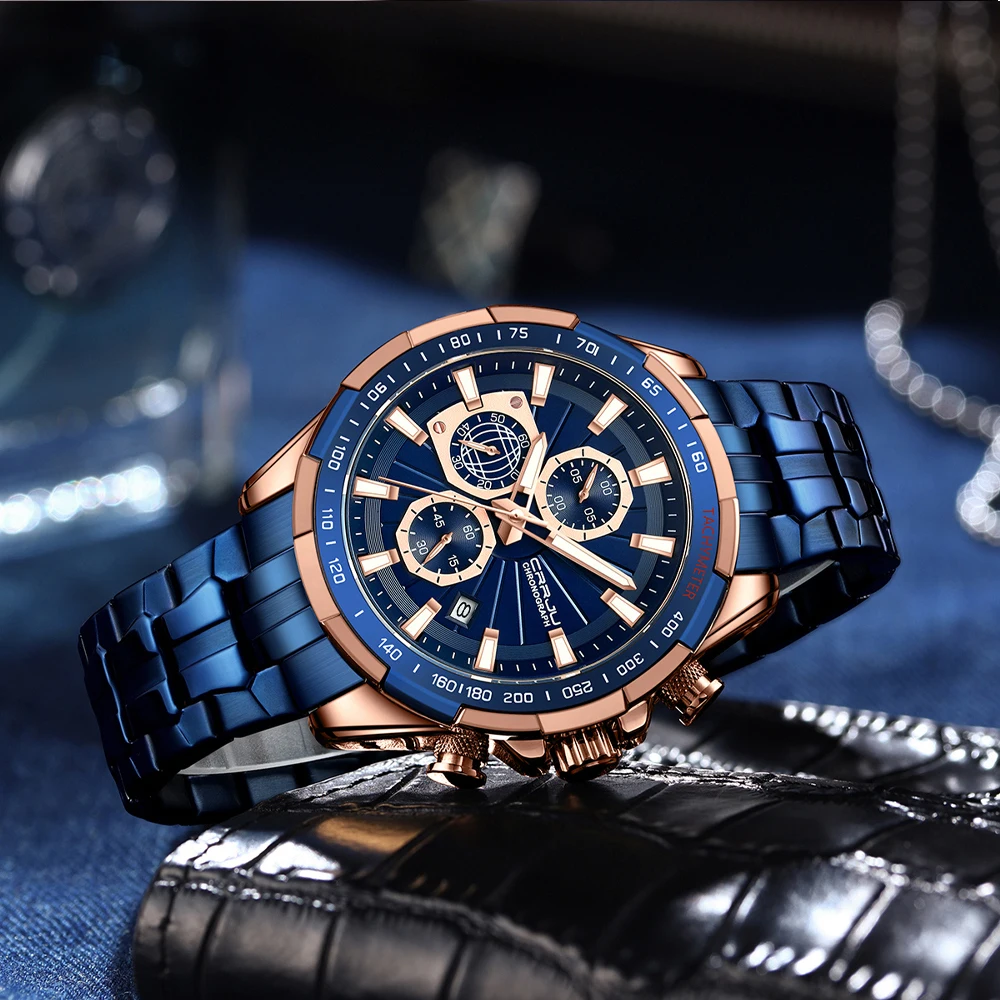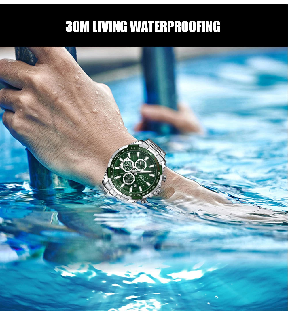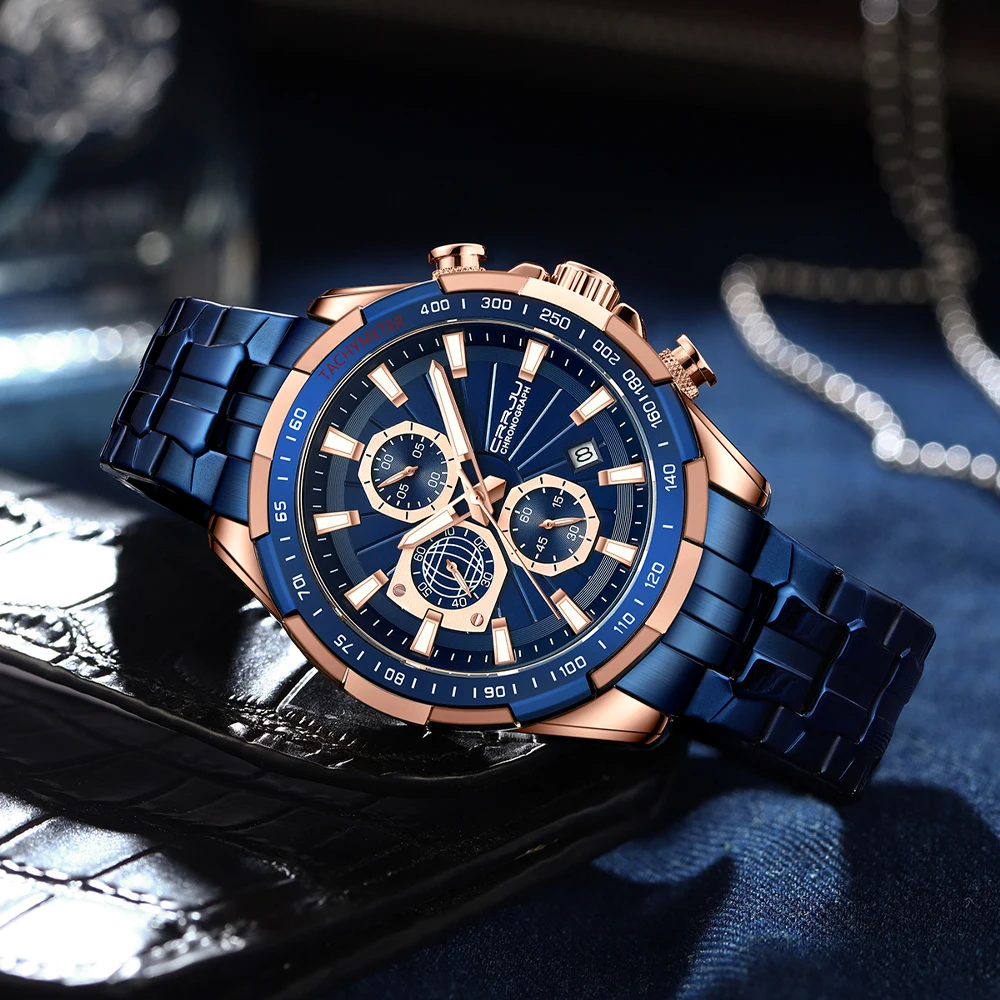 CRRJU Men's Watches Fashion Business Multifunction Quartz Chronograph with Auto Date and Luminous Hands Relogio Masculino