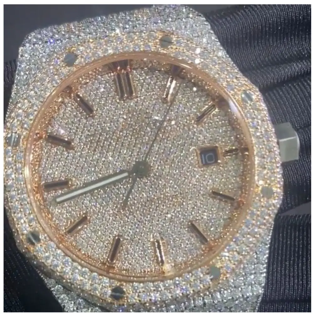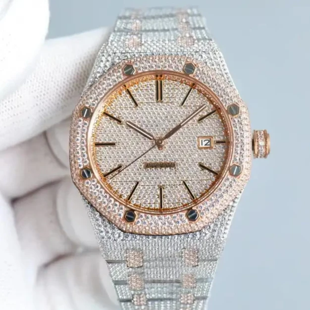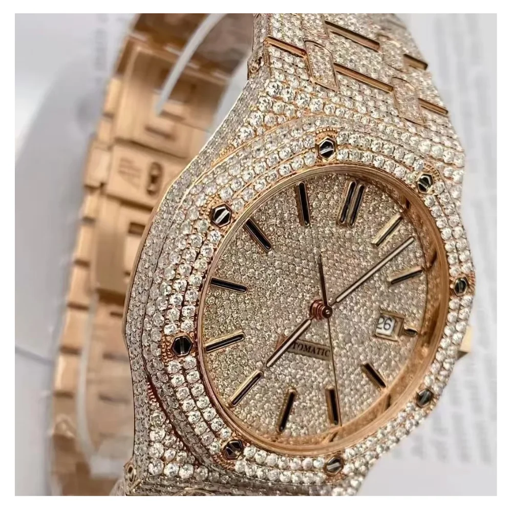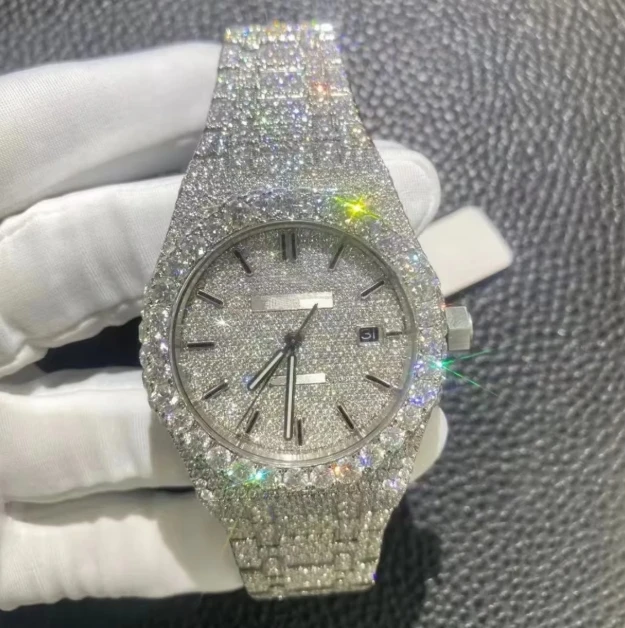 D Color Moissanite Sport Mechanical Watch VVS Hip Hop Stainless Steel Iced Out Diameter Watch Full Pave Setting Pointer Display