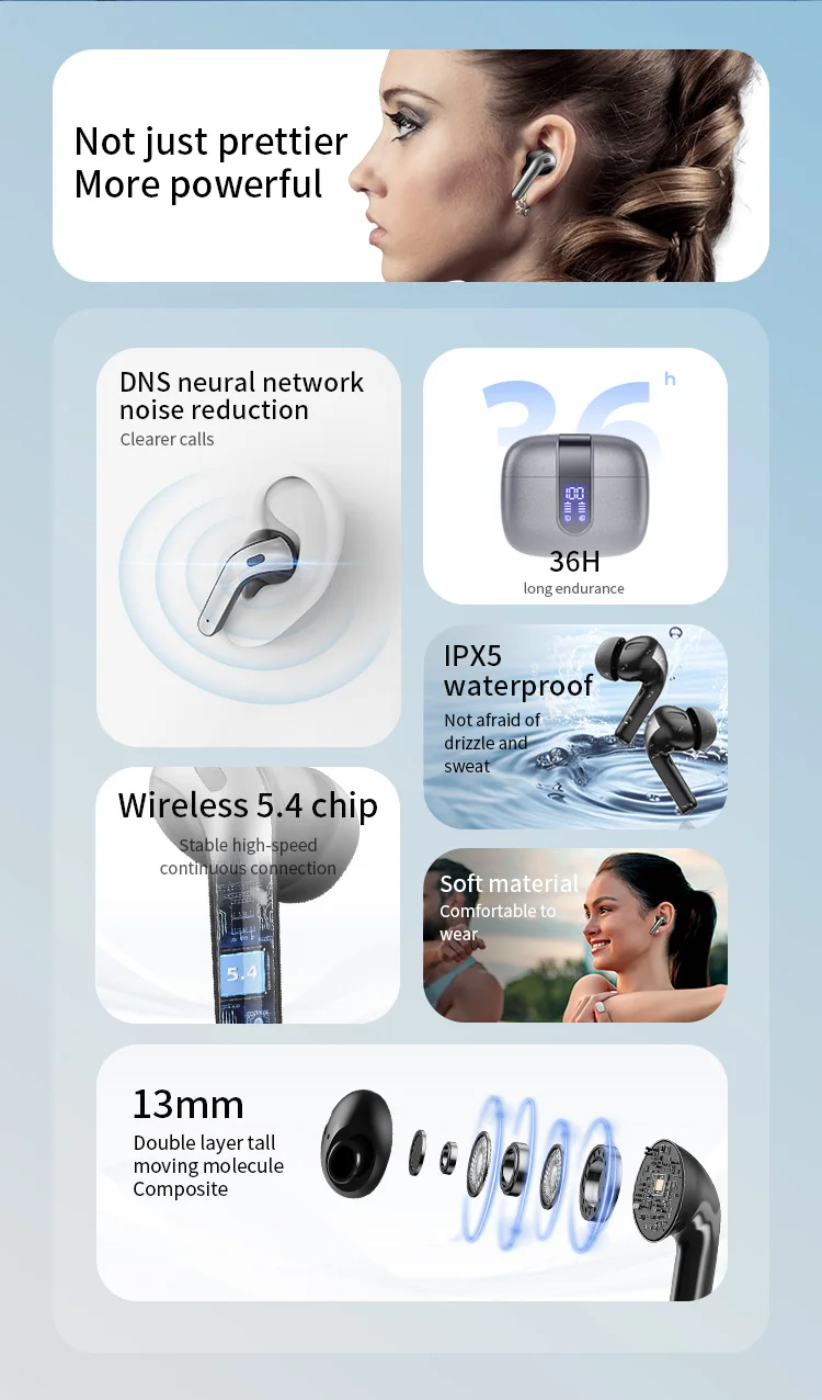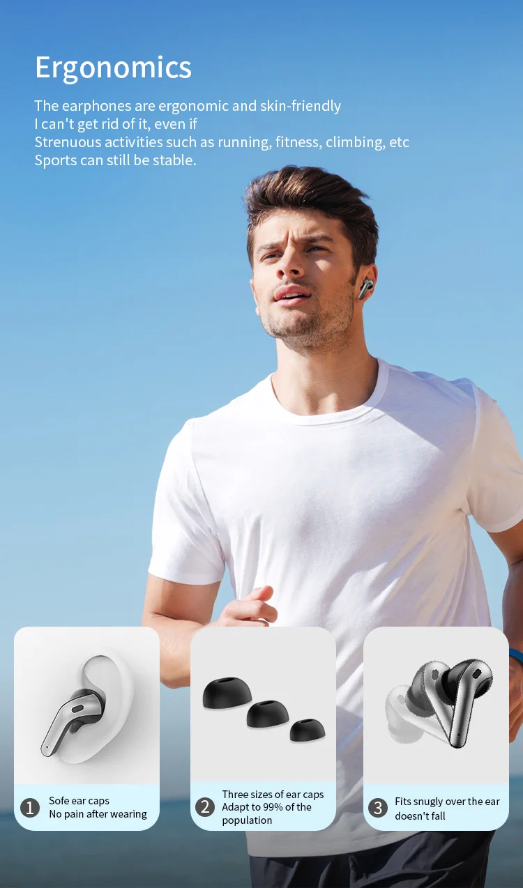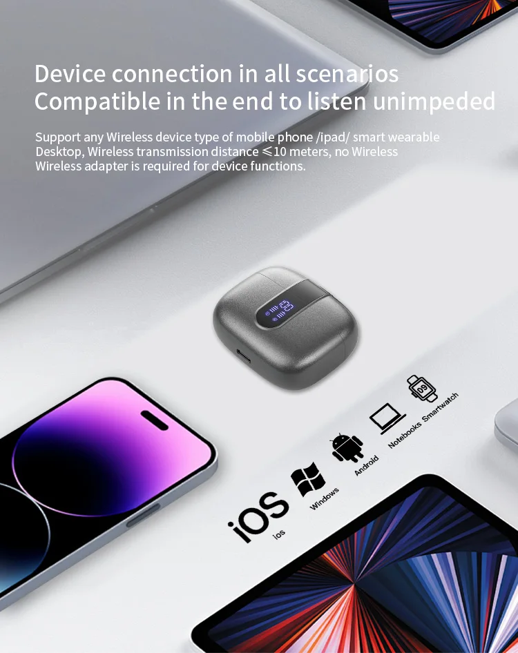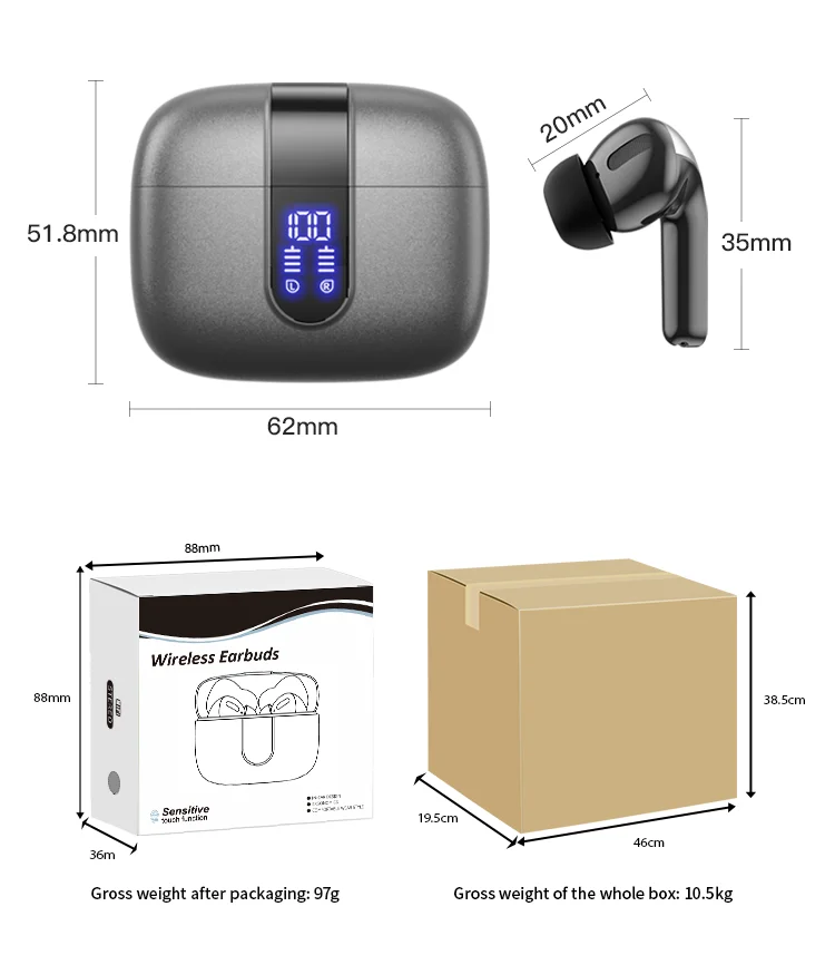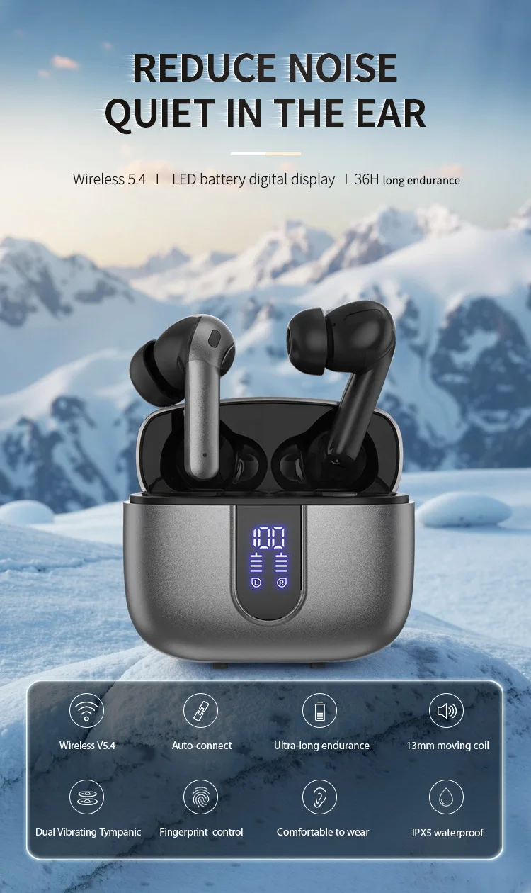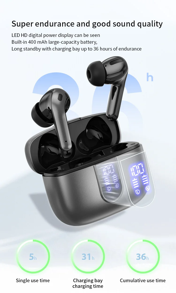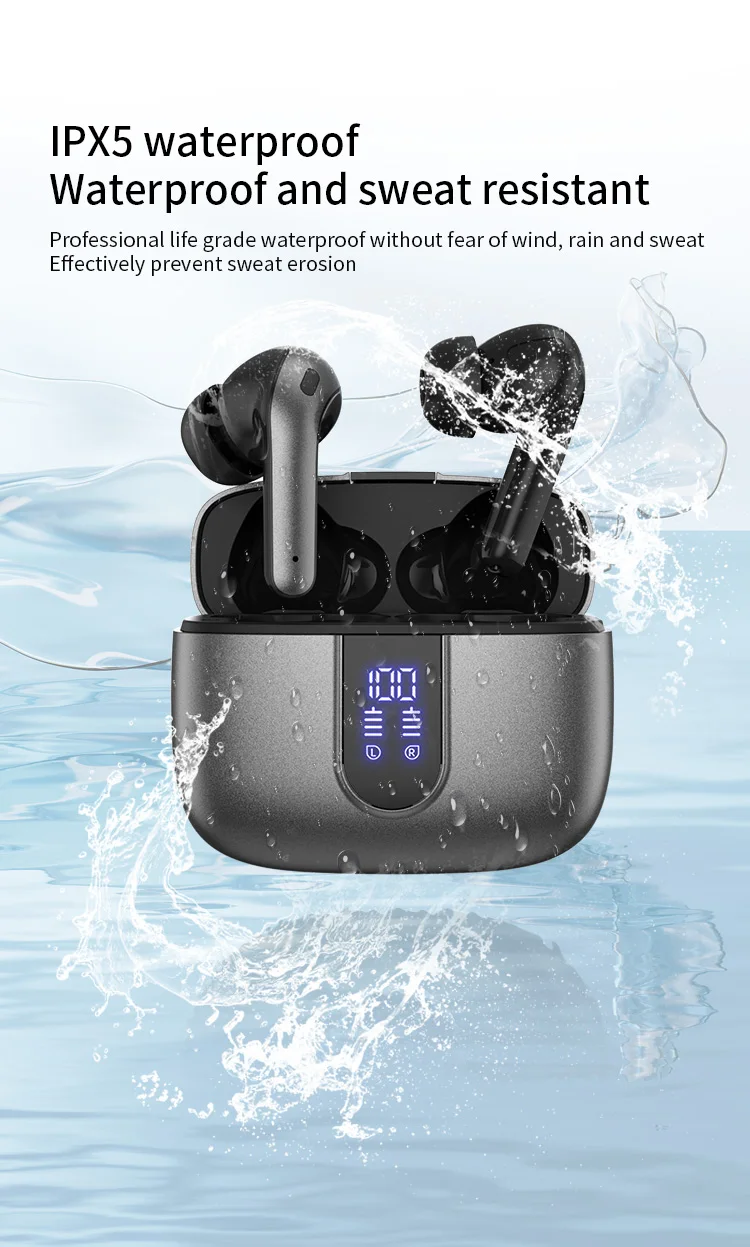 Hot-selling Noise-Canceling Wireless In-Ear Headphones with Digital Display Waterproof Sweatproof Long Battery Life BT Earphones