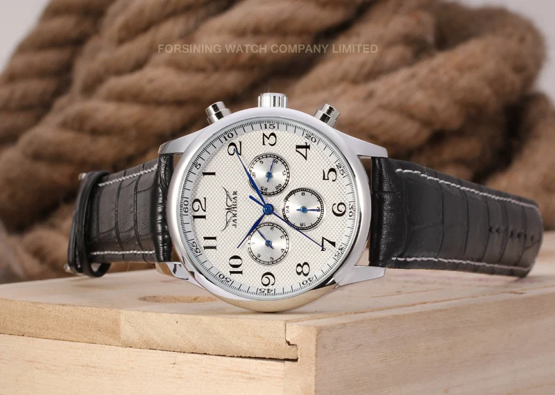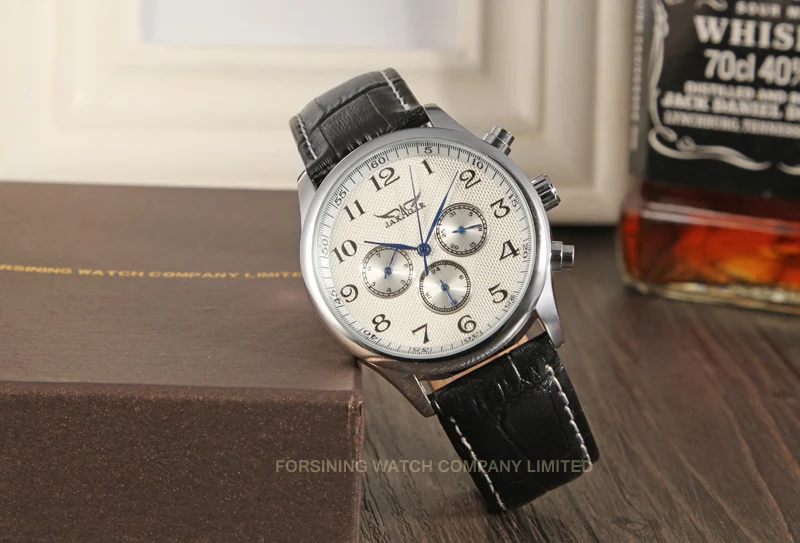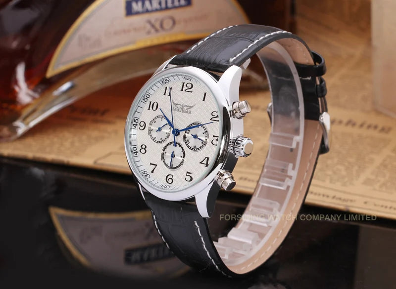 JARAGAR Luxury Replica Six Hands Multifunctional Automatic Man Watches Leather Elegant Mechanical Waterproof Male Wrist Clock