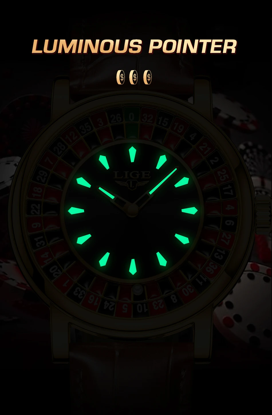 LIGE Creative Luxury Watches men Roulette Game Dial Fashion Mens Watch Waterproof Luminous Quartz Wristwatches Relojs Hombre+Box