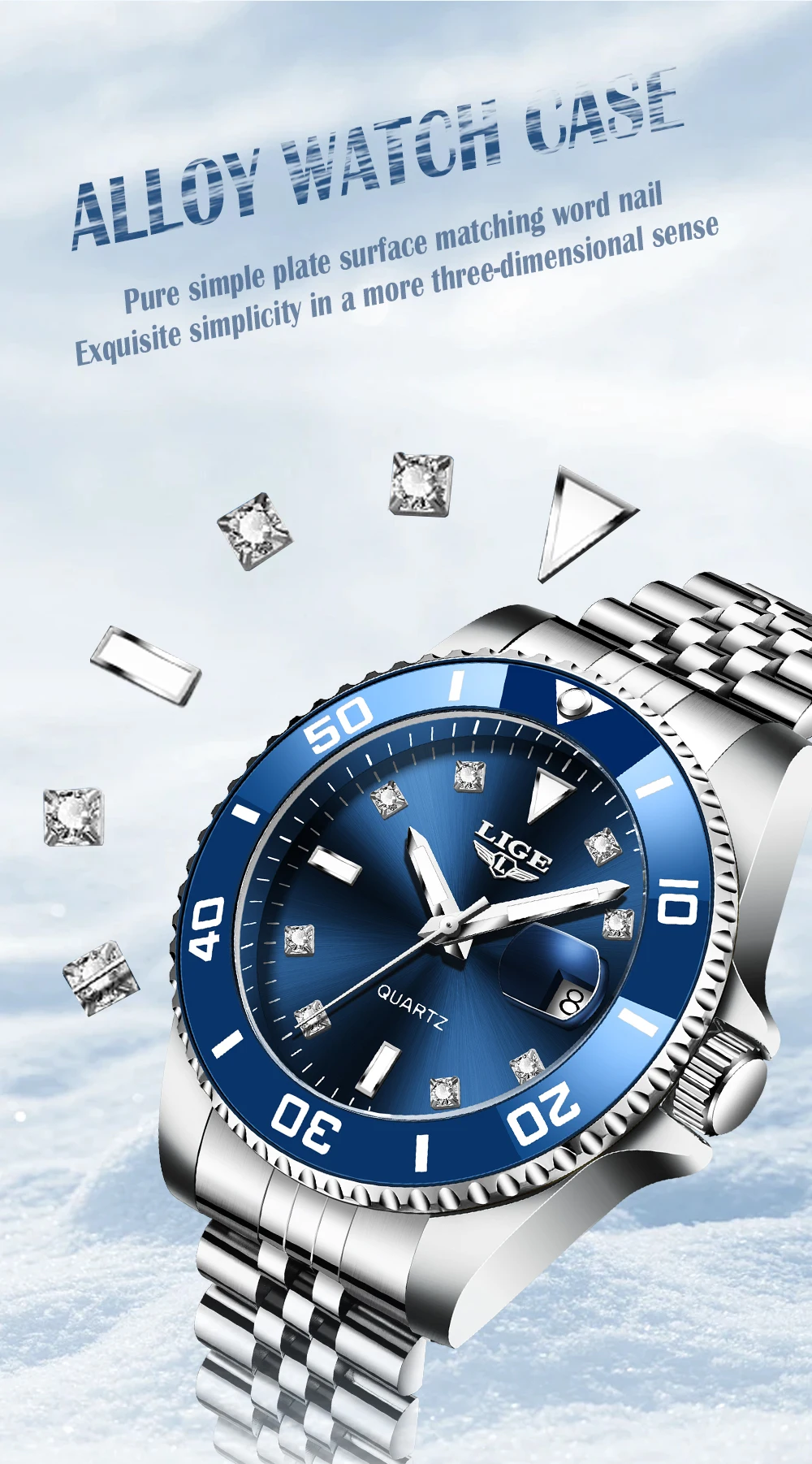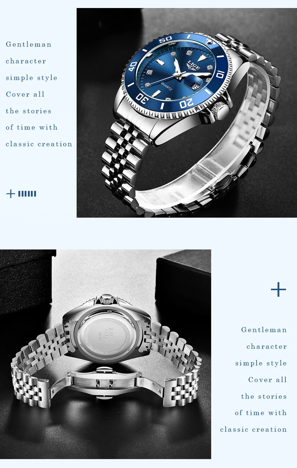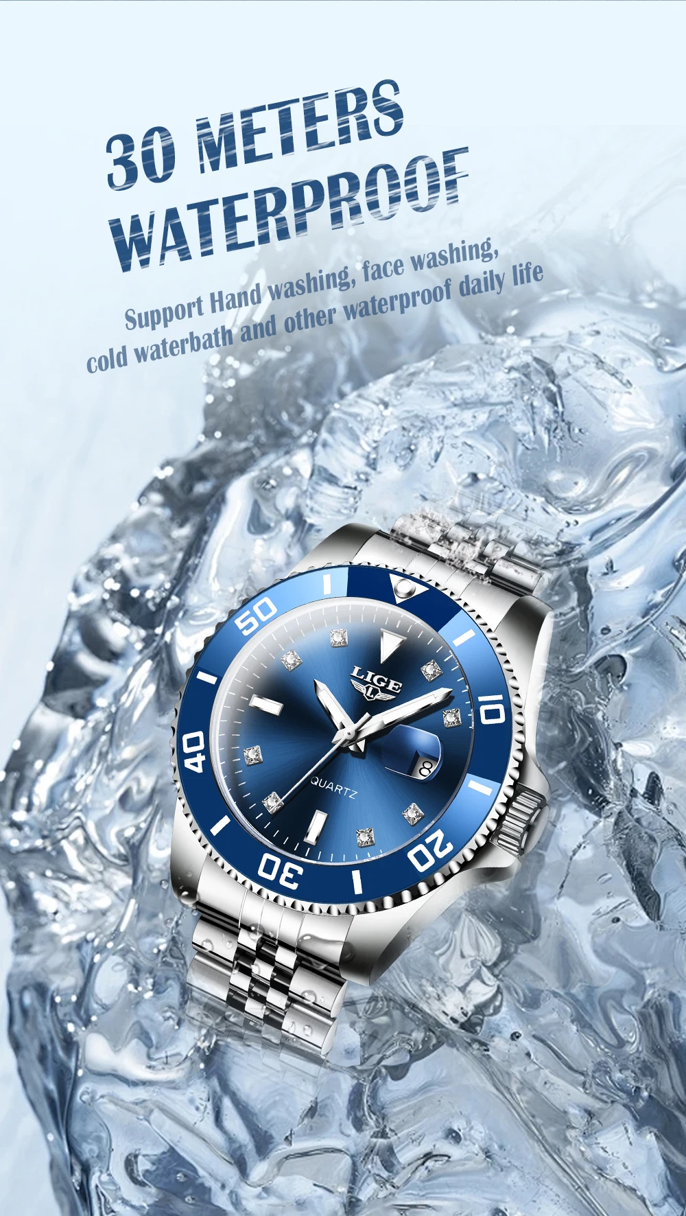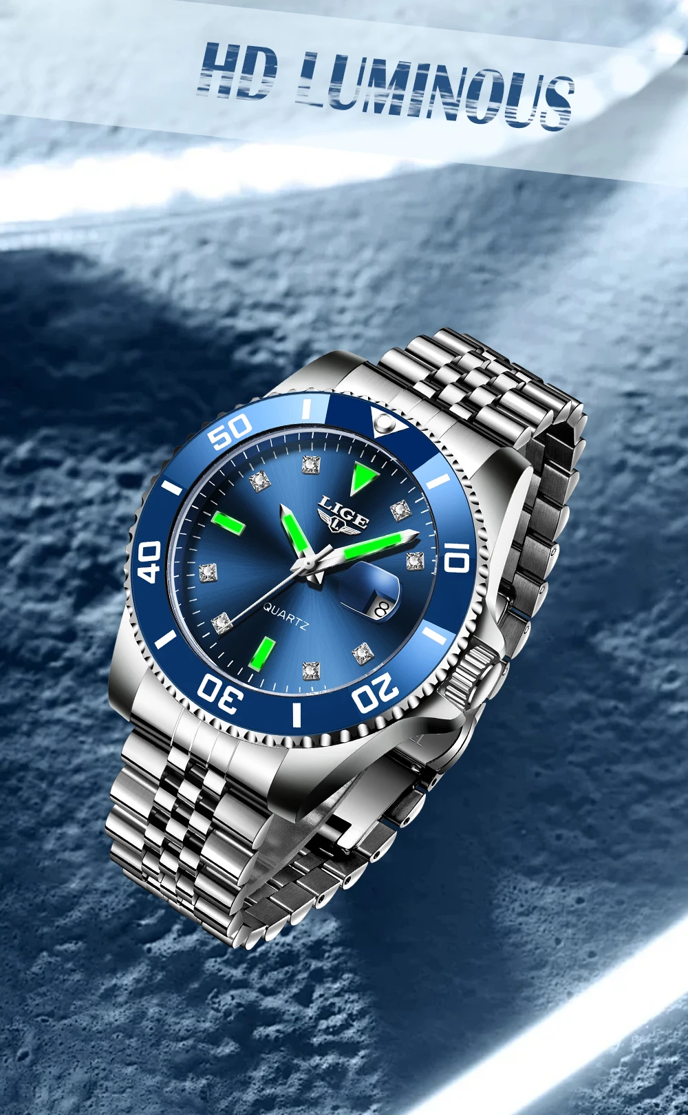 LIGE Men Top Brand Luxury Watch Fashion Diver 30ATM Waterproof Wristwatch Date Clock Sport Quartz Watches Mens Relogio Masculino