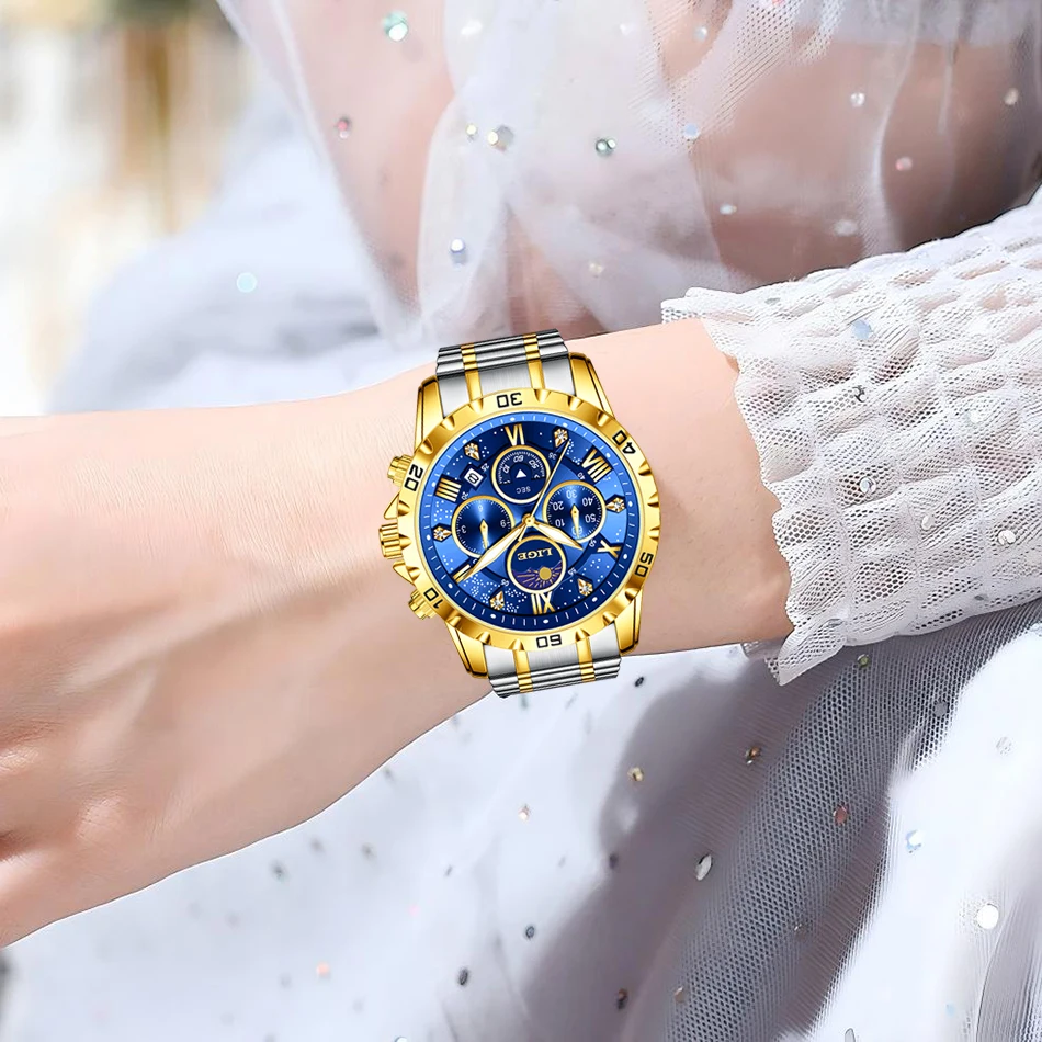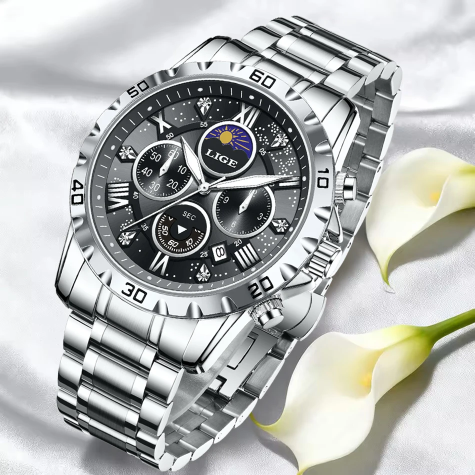 Feature: Shock Resistant,Luminous,Auto Date,Chronograph,Complete Calendar,Moon Phase,Water-Resistance,swim,Luminous Hands