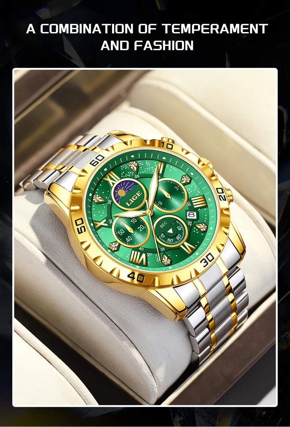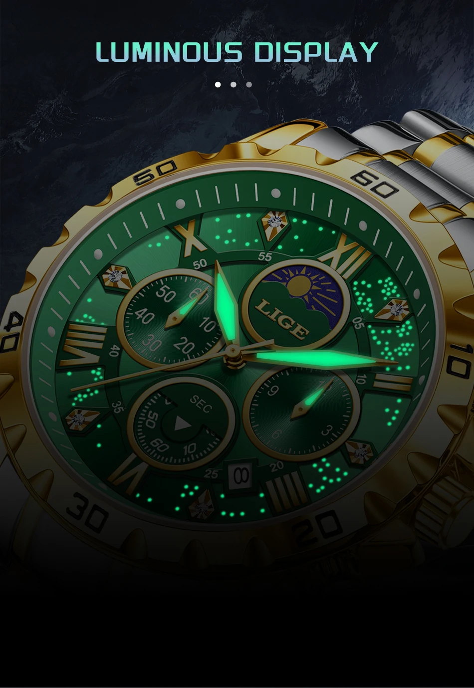LIGE Woman Watches Rose Gold Top Brand Luxury Green Watch Women Quartz Waterproof Women's Wristwatch Ladies Girls Watches Clock