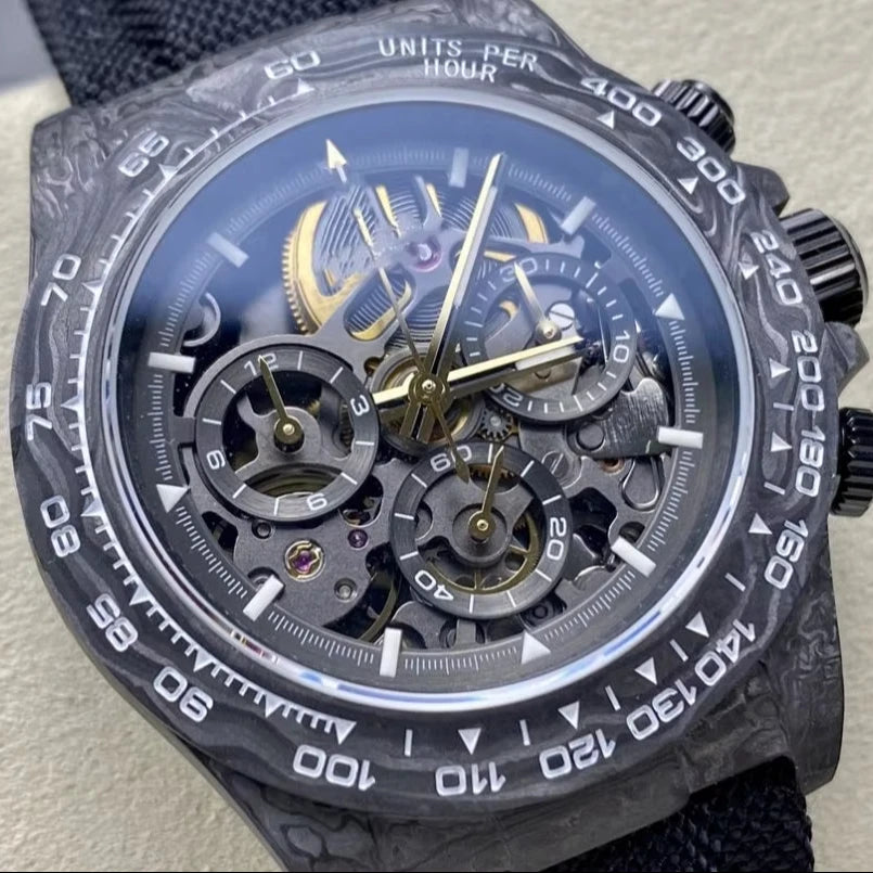 Luxury Luminous Mechanical Watch Waterproof 40mm Top Quality DIW Factory ETA 4130 Movement Carbon GET Skeleton Watch