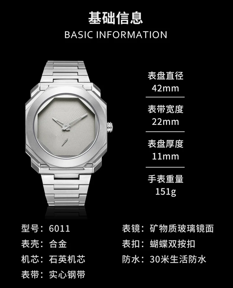 Model Number: Watches for Men Luxury Stainless Steel Unique Octagonal Dial Waterproo