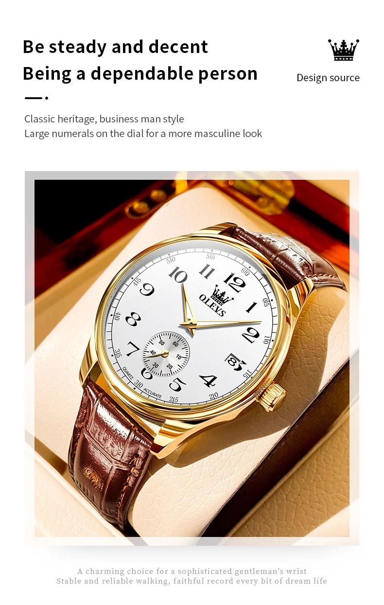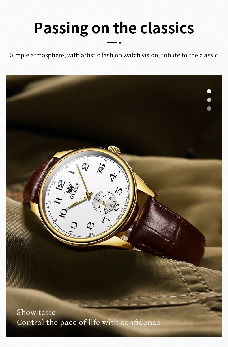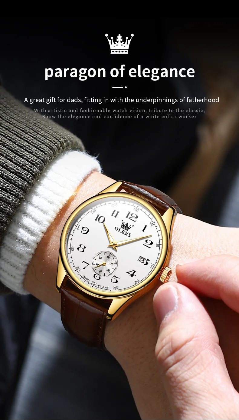 OLEVS 3622 Chronograph Quartz Watch for Men Fashion Leather Strap Luminous Waterproof Classic Digital Dial Top Men's Wristwatch