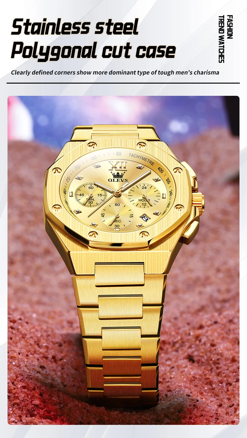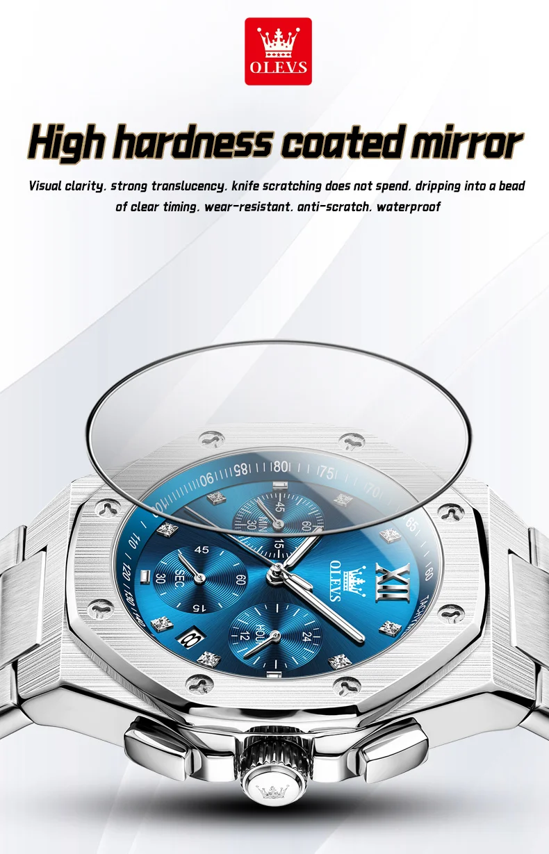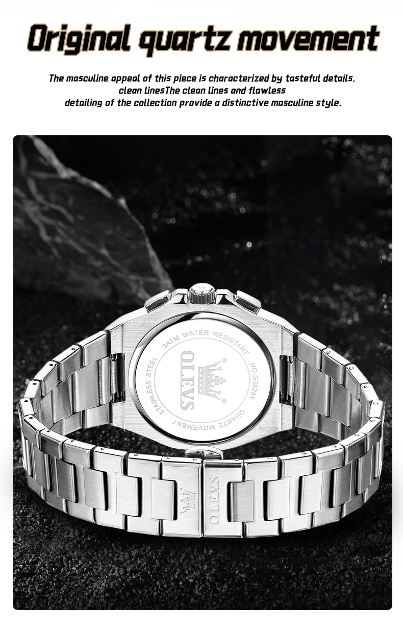 OLEVS 3626 Men's Watches Rhombus Dial Original Quartz Watch for Man Waterproof Luminous Stainless Steel Wristwatch Male Date