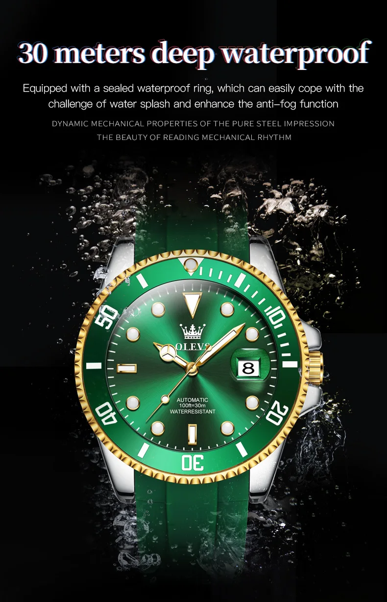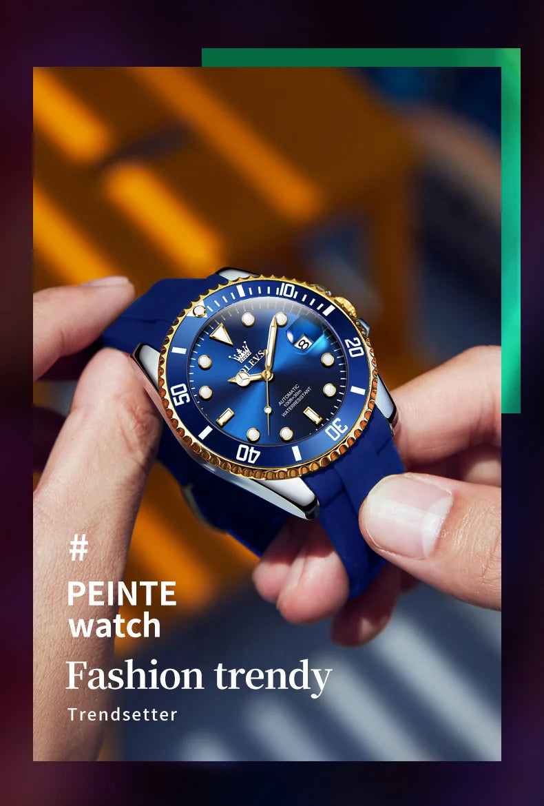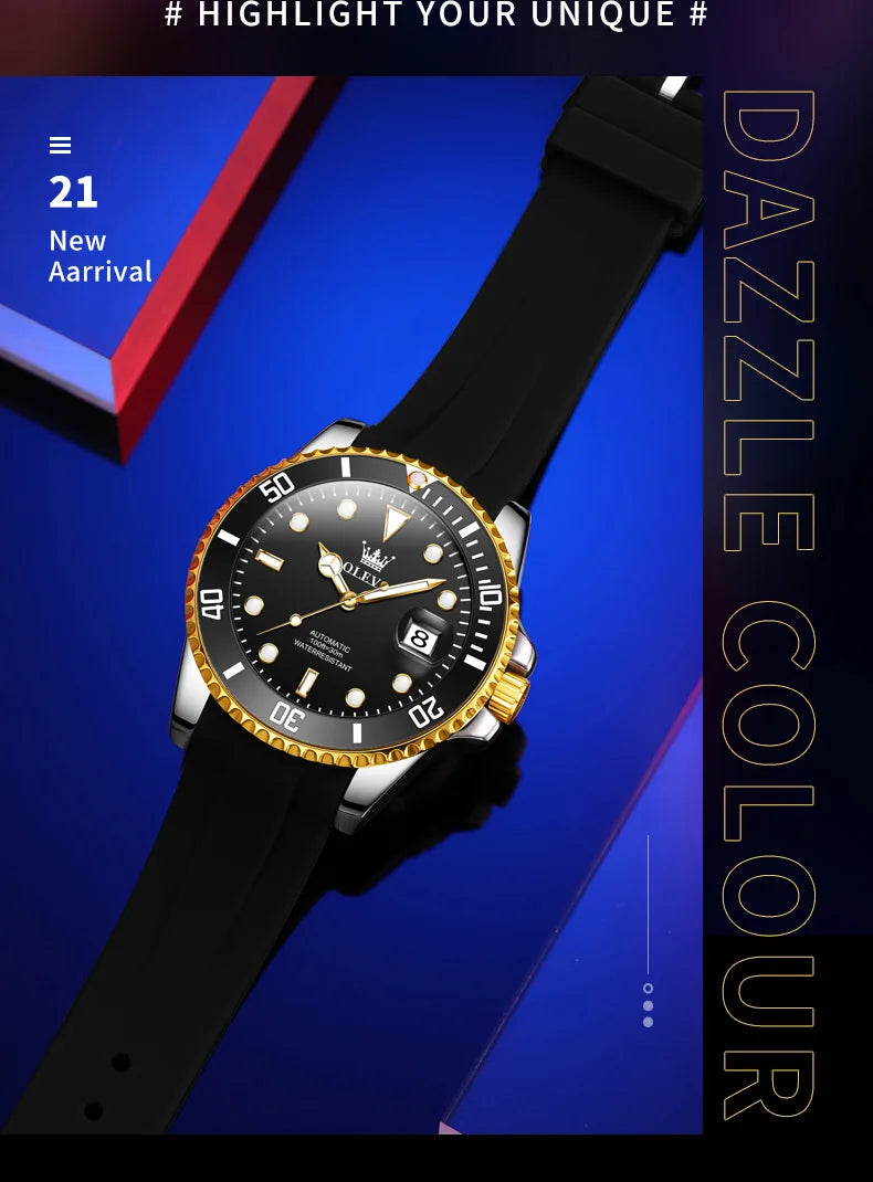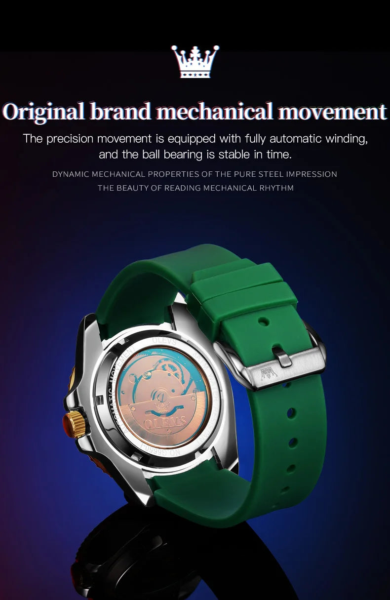 OLEVS 6650 Luxury Automatic Watch Men Rotary Lap Mechanical Movement Waterproof Sports Top Brand Stainless Steel Wristwatch