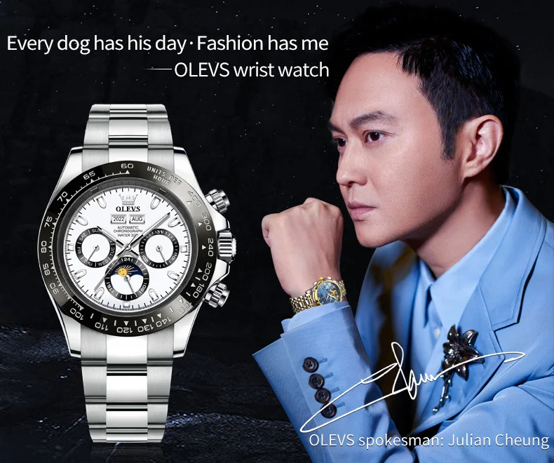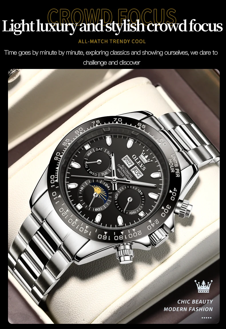 OLEVS 6654 Mens Watch Chronograph Automatic Mechanical Wristwatch Light Luxury Waterproof Luminous Function Brand Watch for Man