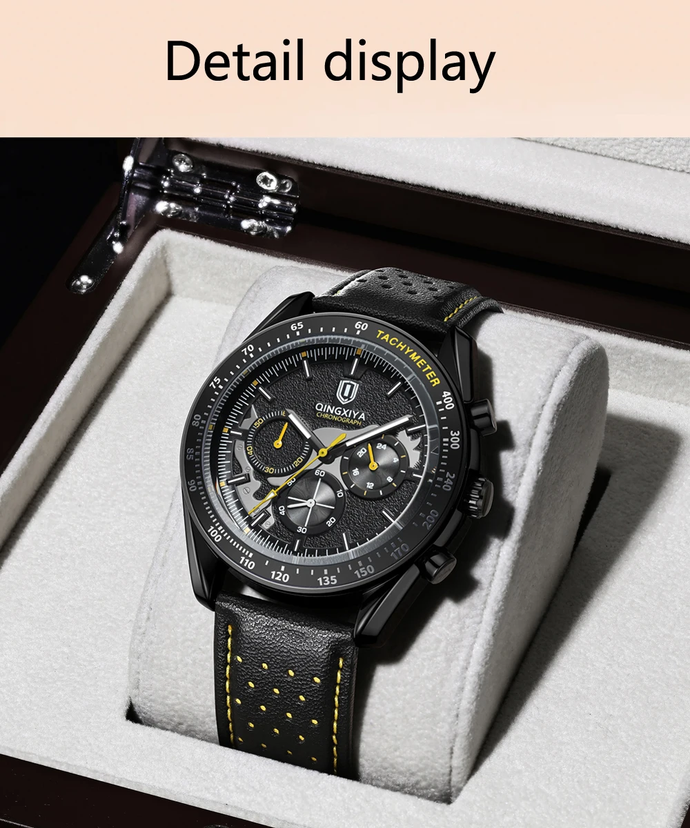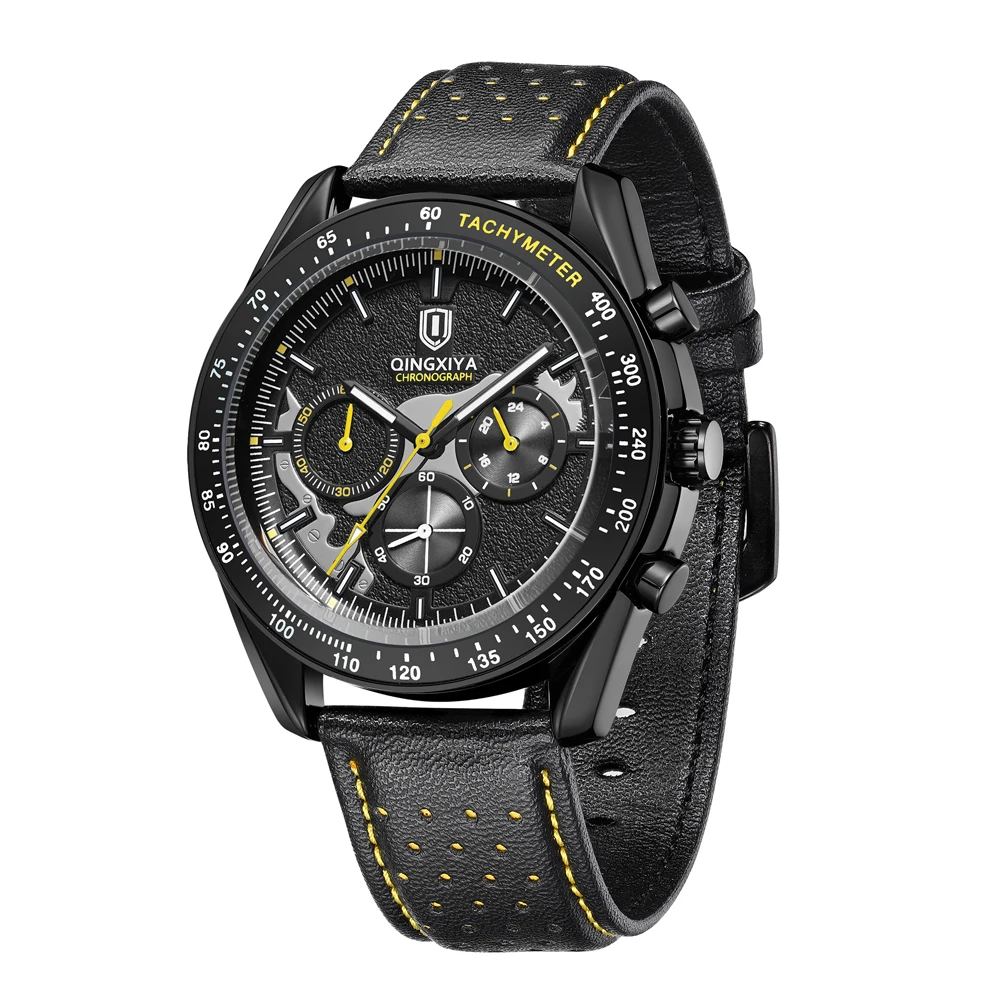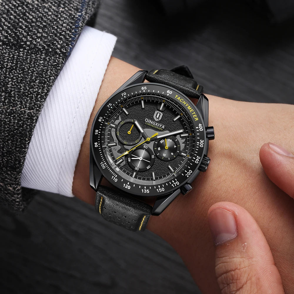 QINGXIYA New Men's Quartz Watches Top Brand Luxury Chronograph Watch Sport Leather Strap Strap Waterproof 24 Hours Male Clock