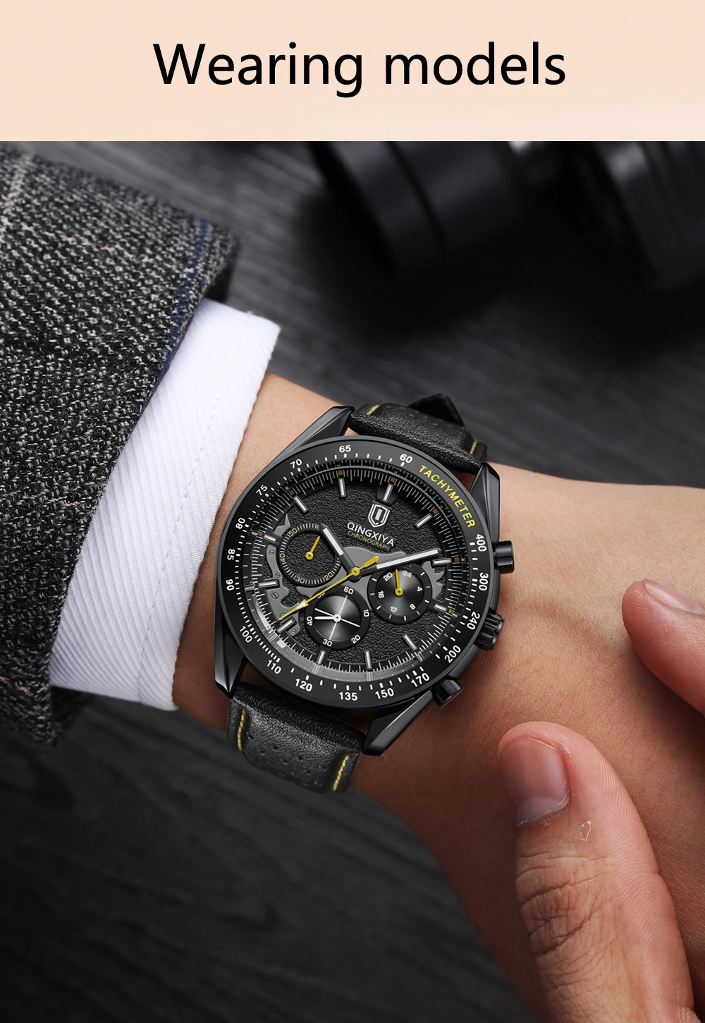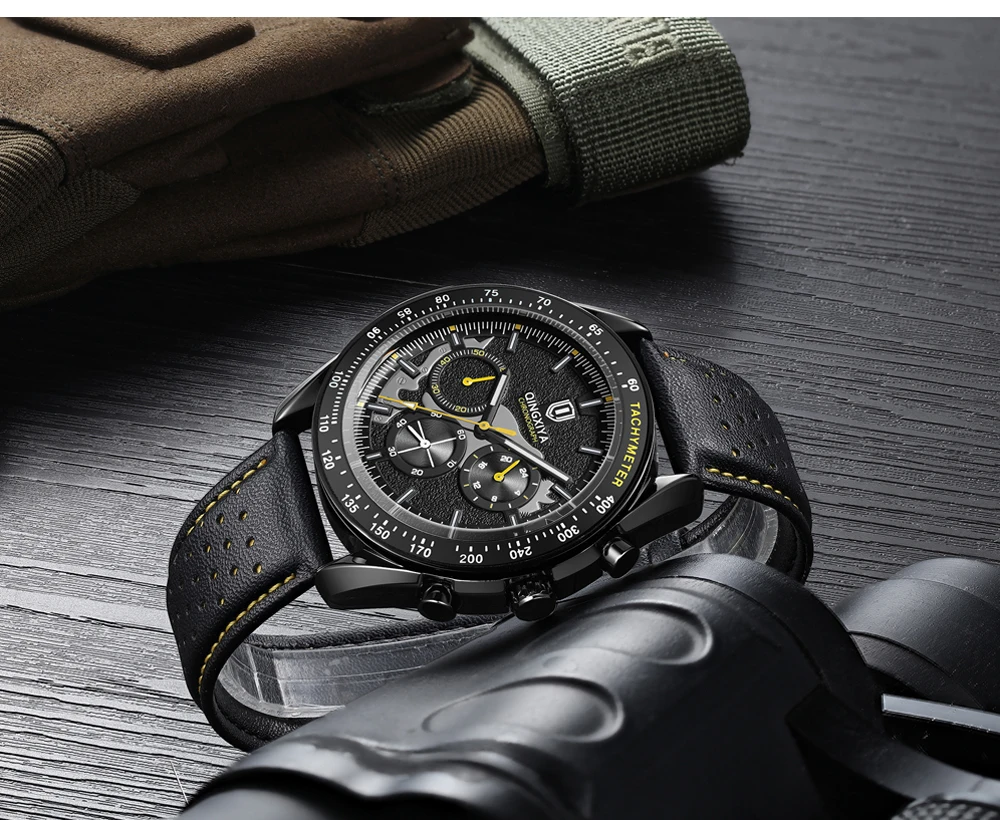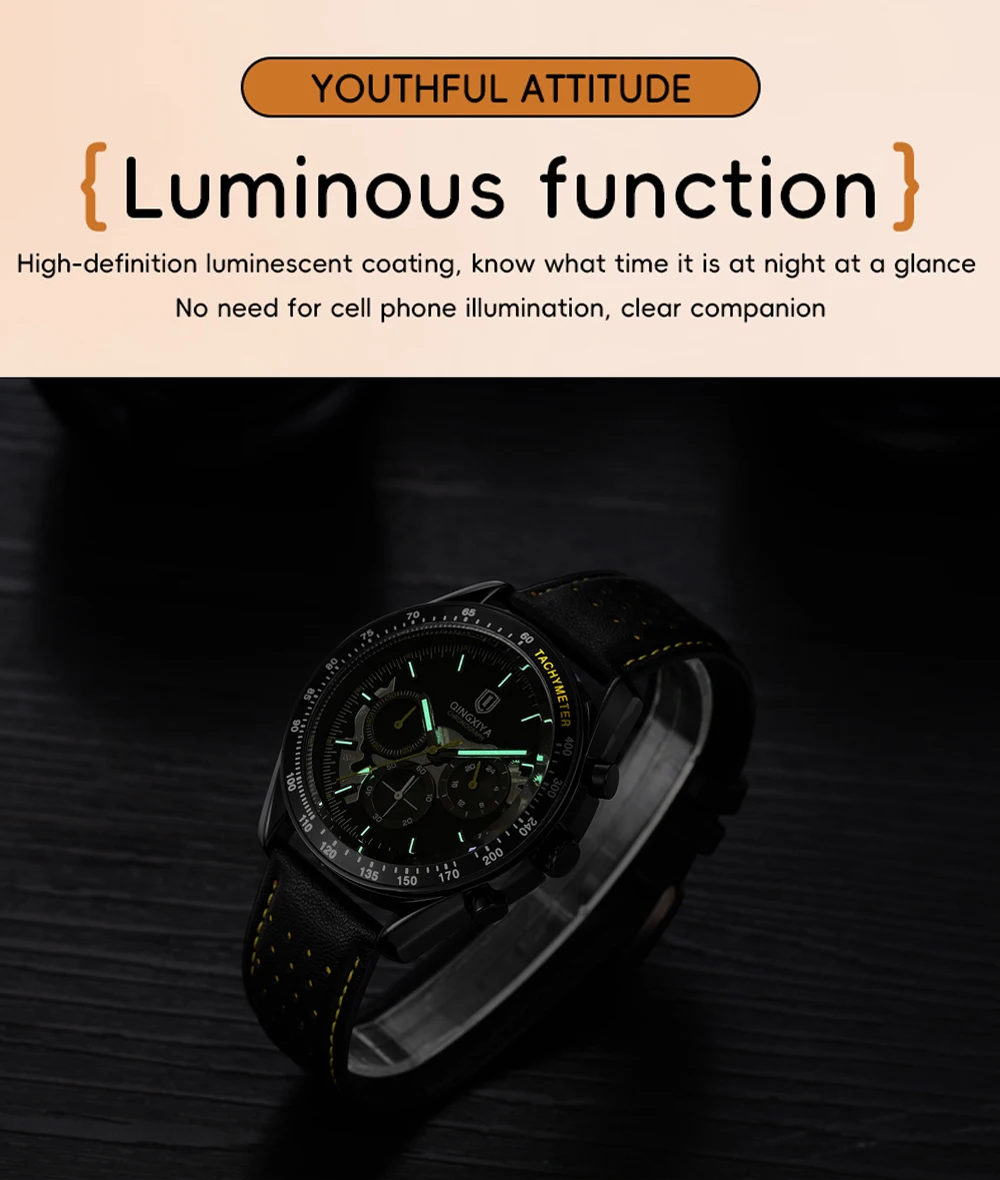 QINGXIYA New Men's Quartz Watches Top Brand Luxury Chronograph Watch Sport Leather Strap Strap Waterproof 24 Hours Male Clock