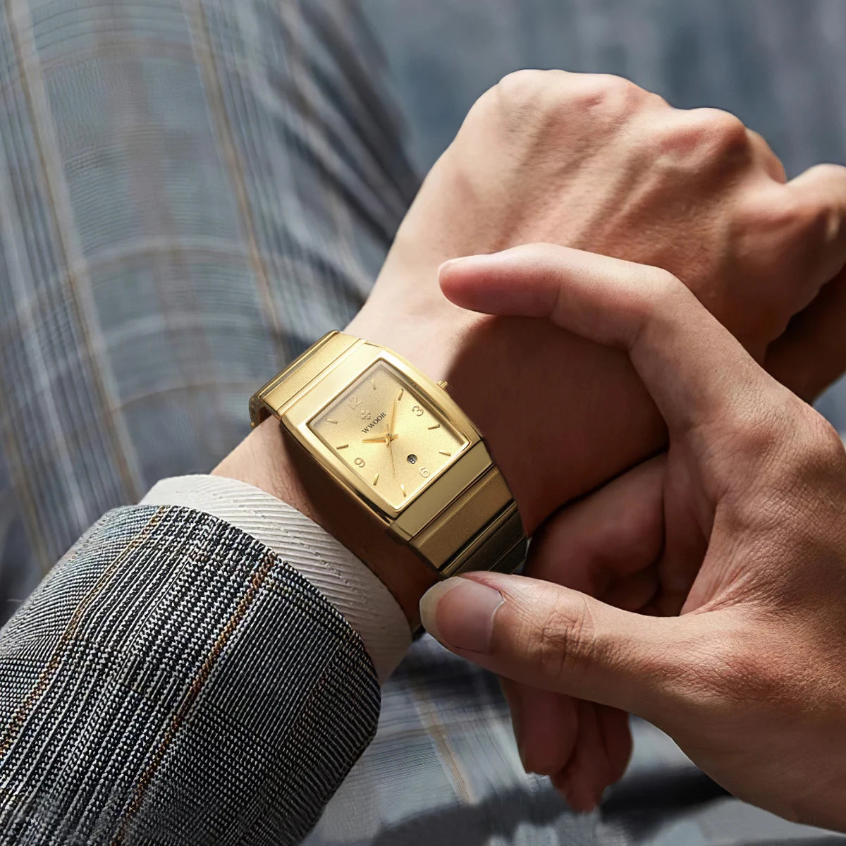 GET THE LOOK✨:WWOOR 2023 New Square Watch Men with Automatic Date Luxury Stainless Steel Gold Mens Quartz Wrist Watches Relogio Masculino