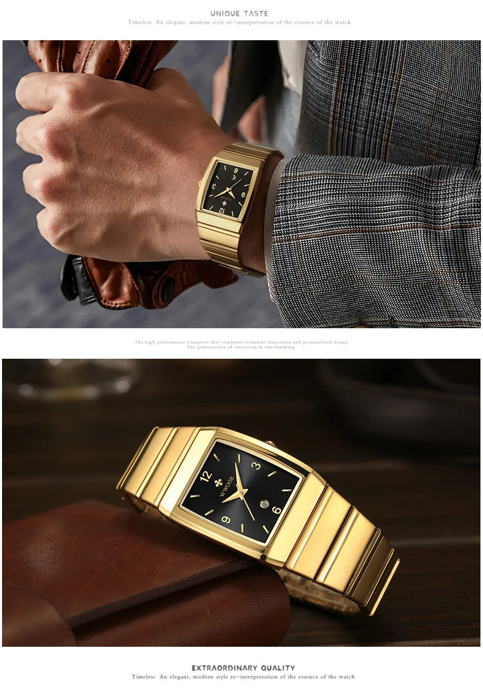 Relogio Masculino WWOOR New Man's Square Watch For Men with Automatic Date Luxury Stainless Steel Gold Mens Quartz Wrist Watches
