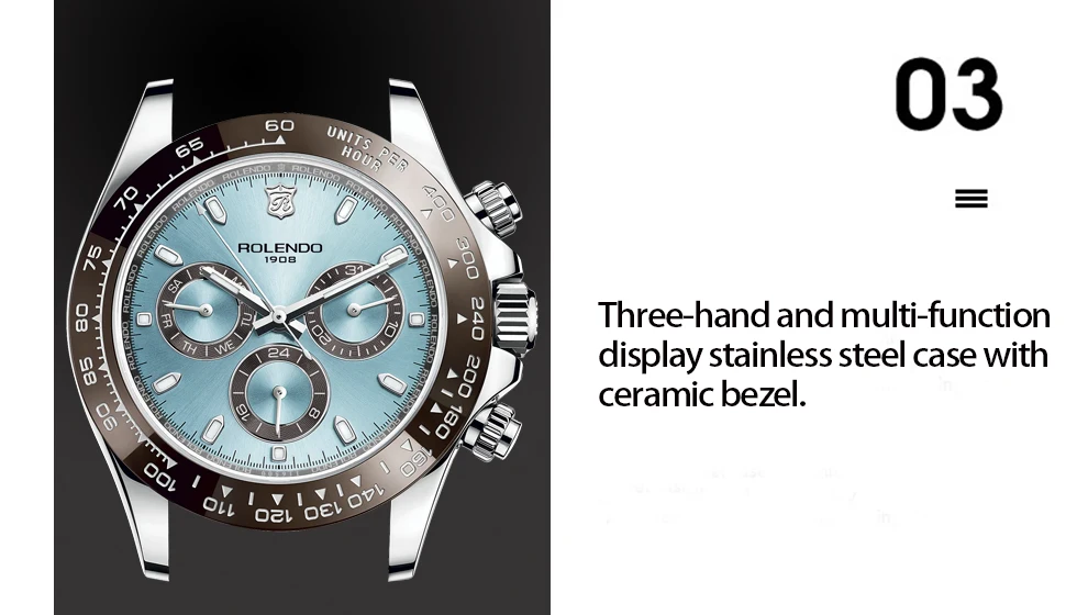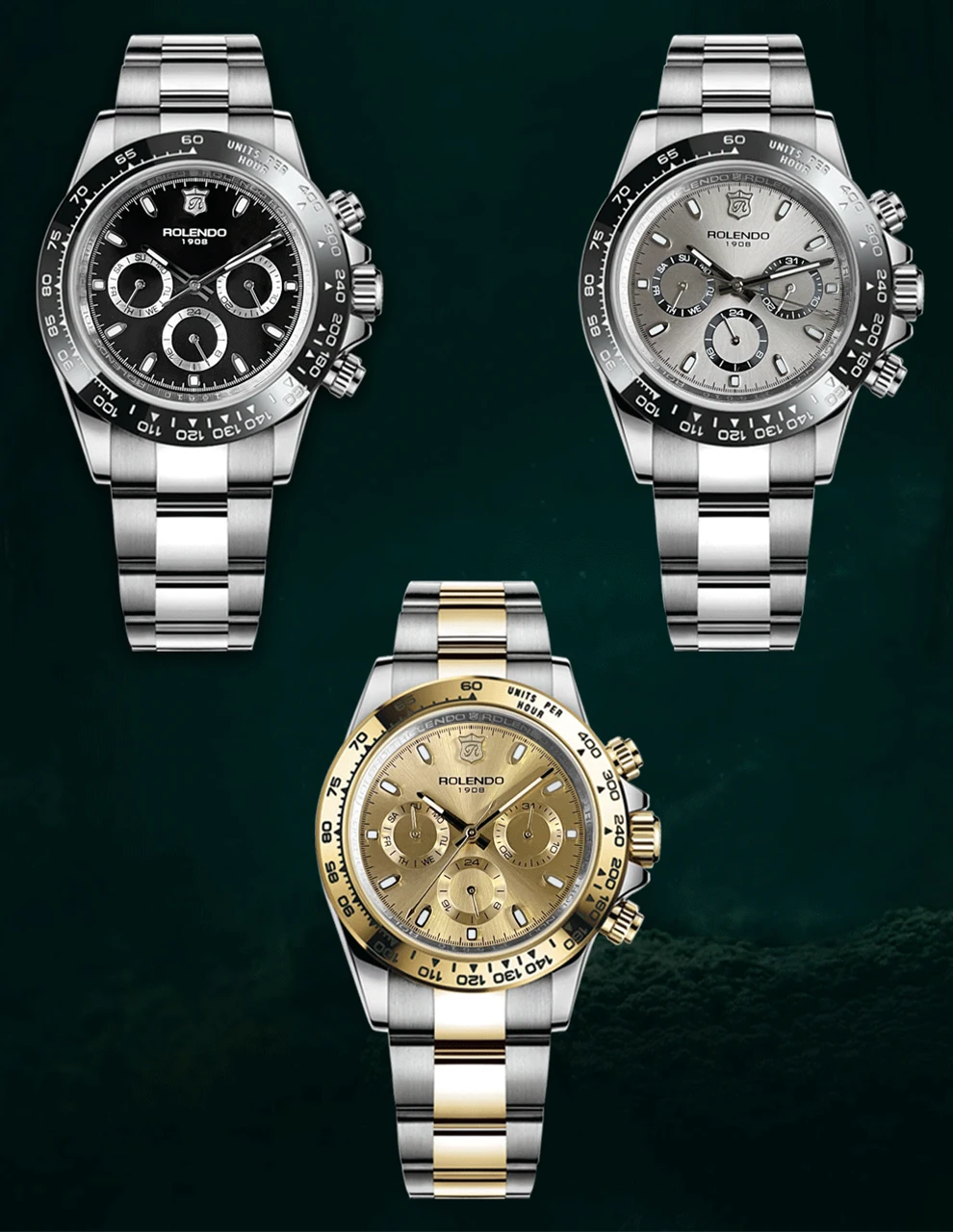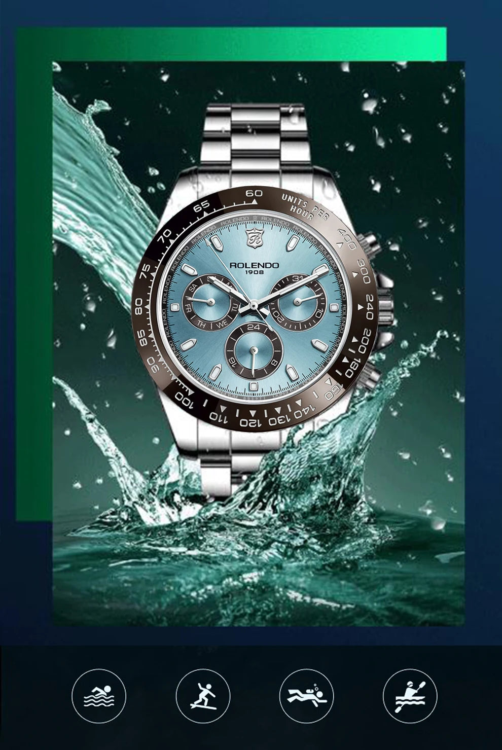 ROLENDO Luxury Men Automatic Diver Watch 40.5mm Mineral Crystal Luminous Date 300M Waterproof High-end Men's Wristwatch Gift