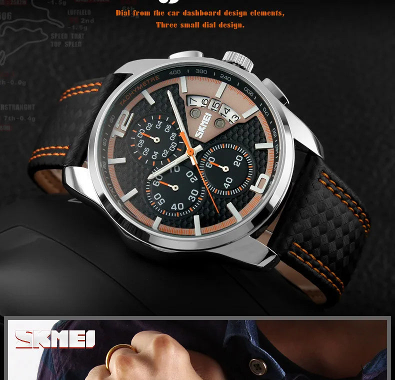 Skmei Top Brand Luxury Leather Strap 5Bar Waterproof Quartz Wristwatches Relogio Masculino Fashion Sport Mens Watches 9106