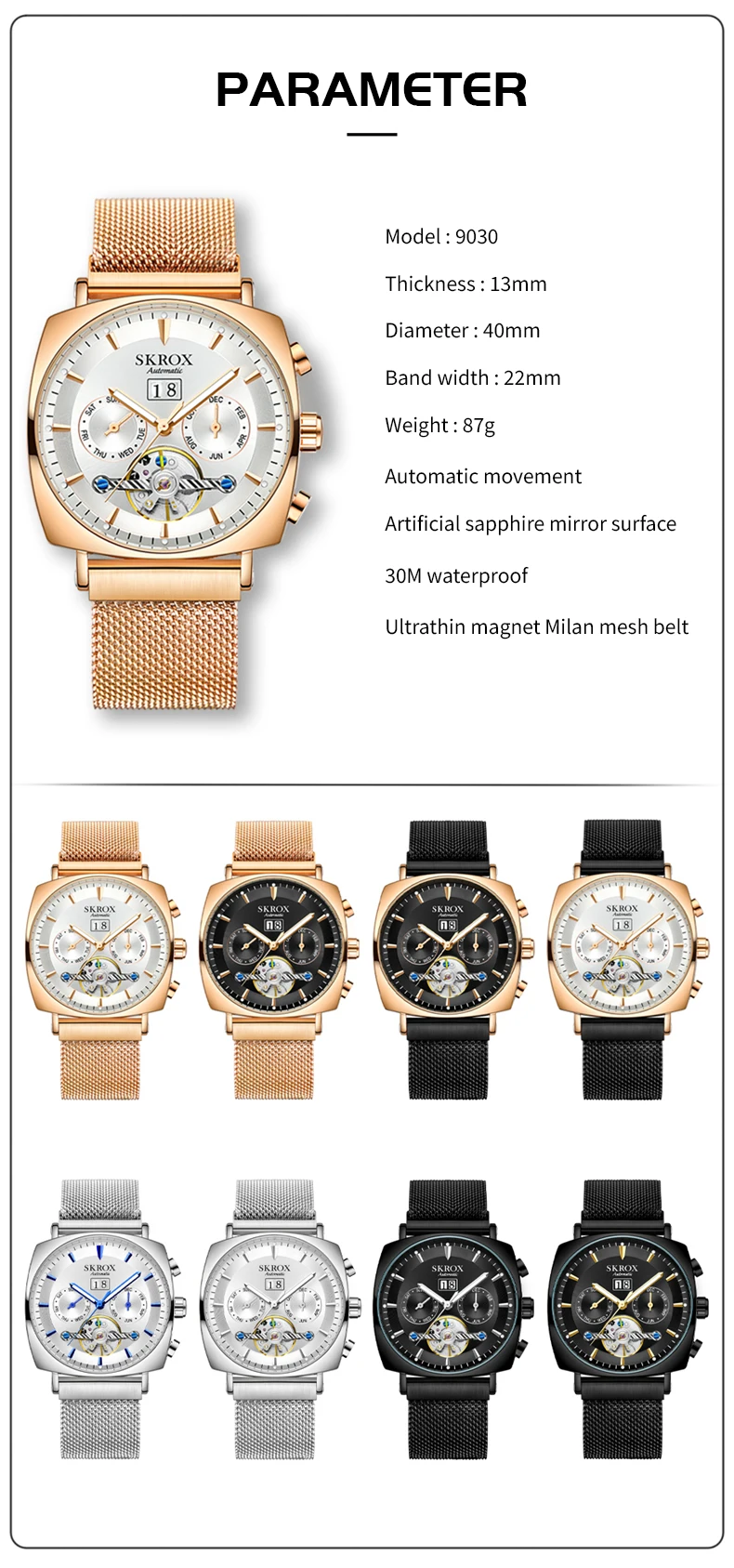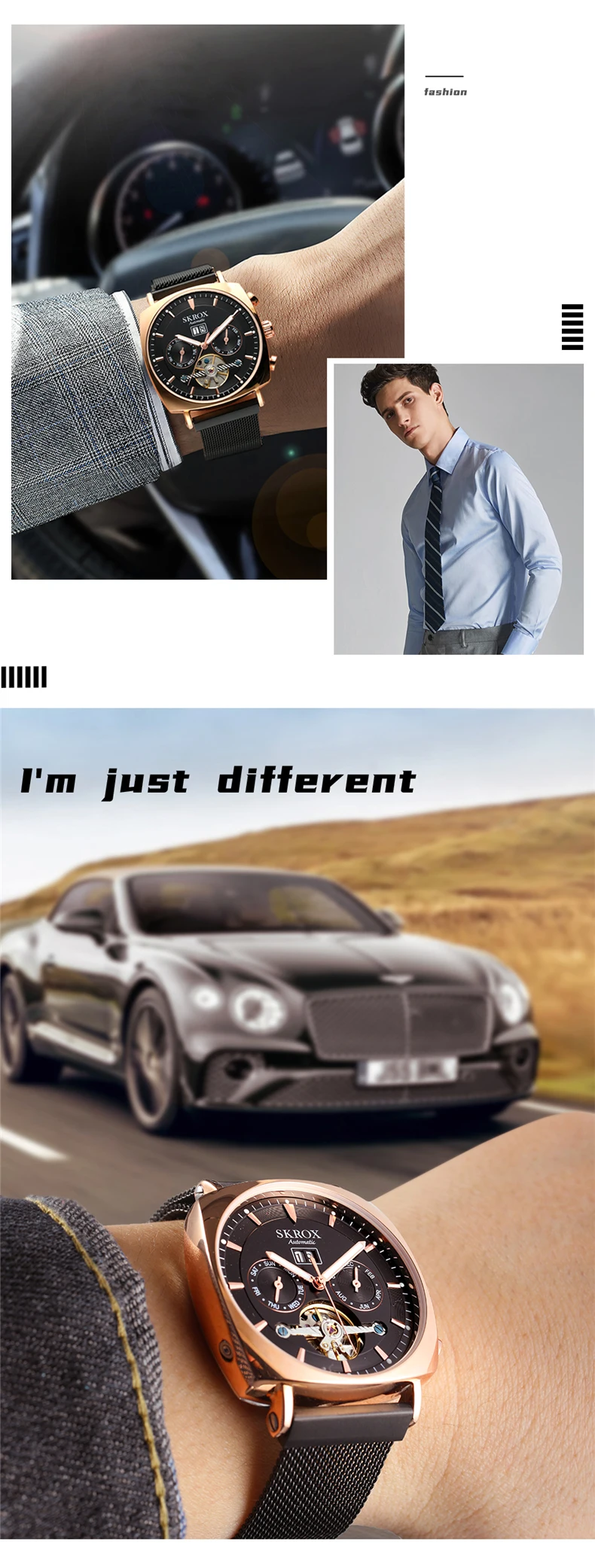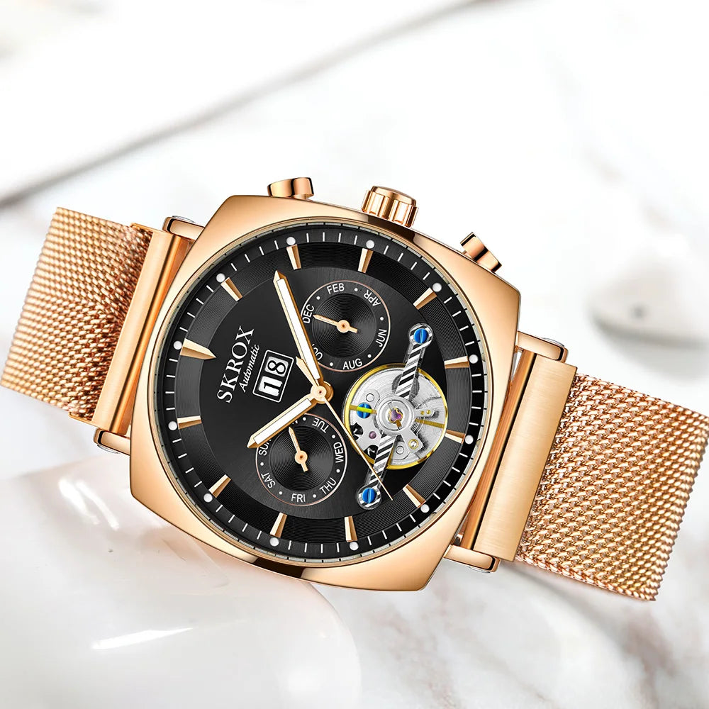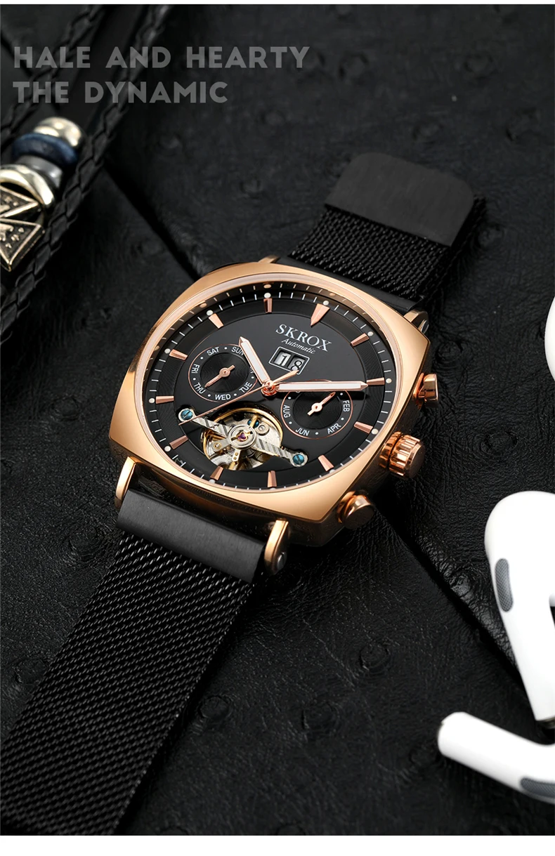 SKROX Square Tourbillon Automatic Movement Man Watch Mechanical Male Wristwatches Original Brand High-End Luxury Clockwork reloj