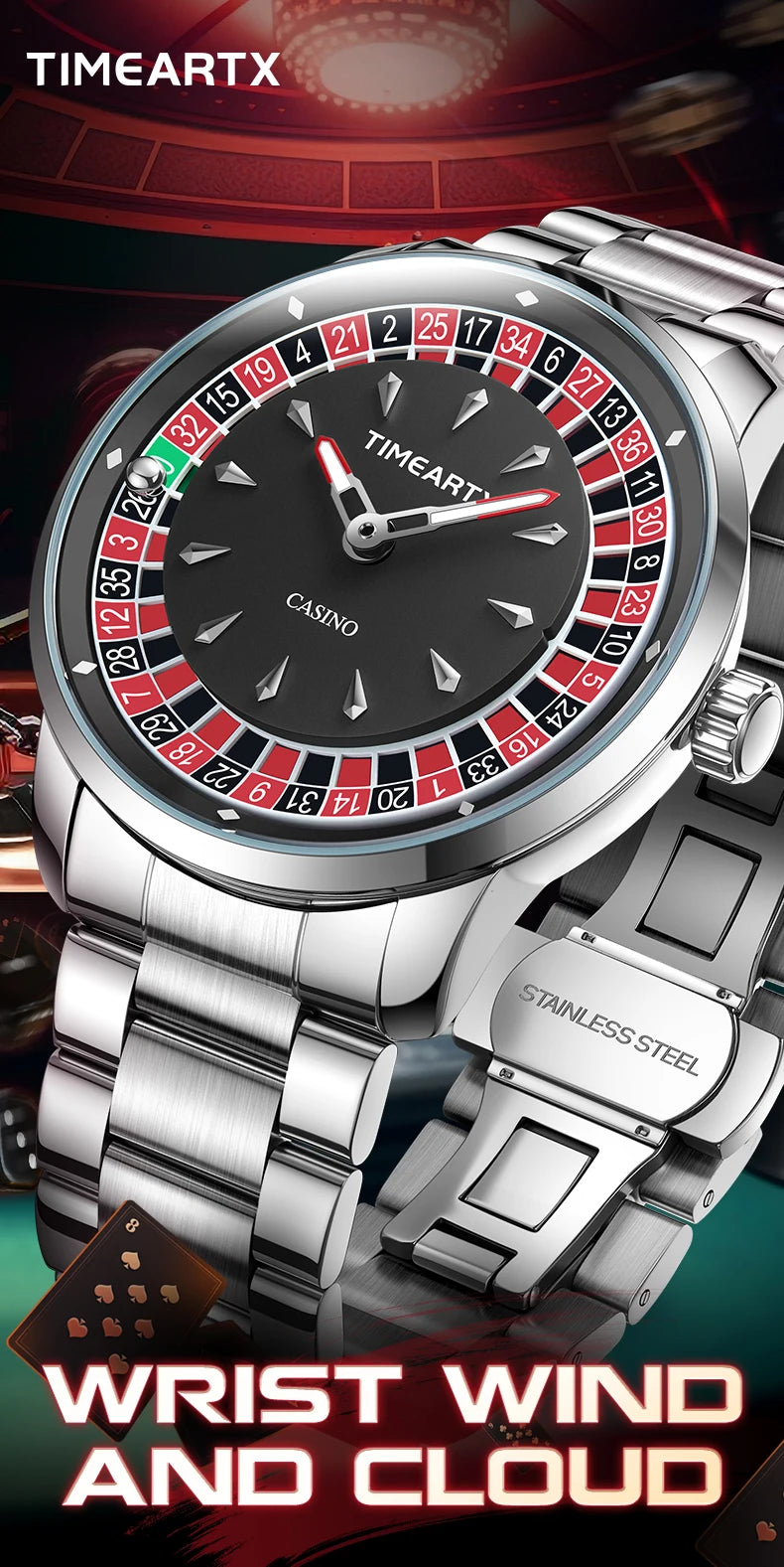 TIMEARTX Brand New Luxury Quartz Watches Man European Roulette Poker Game Wristwatch