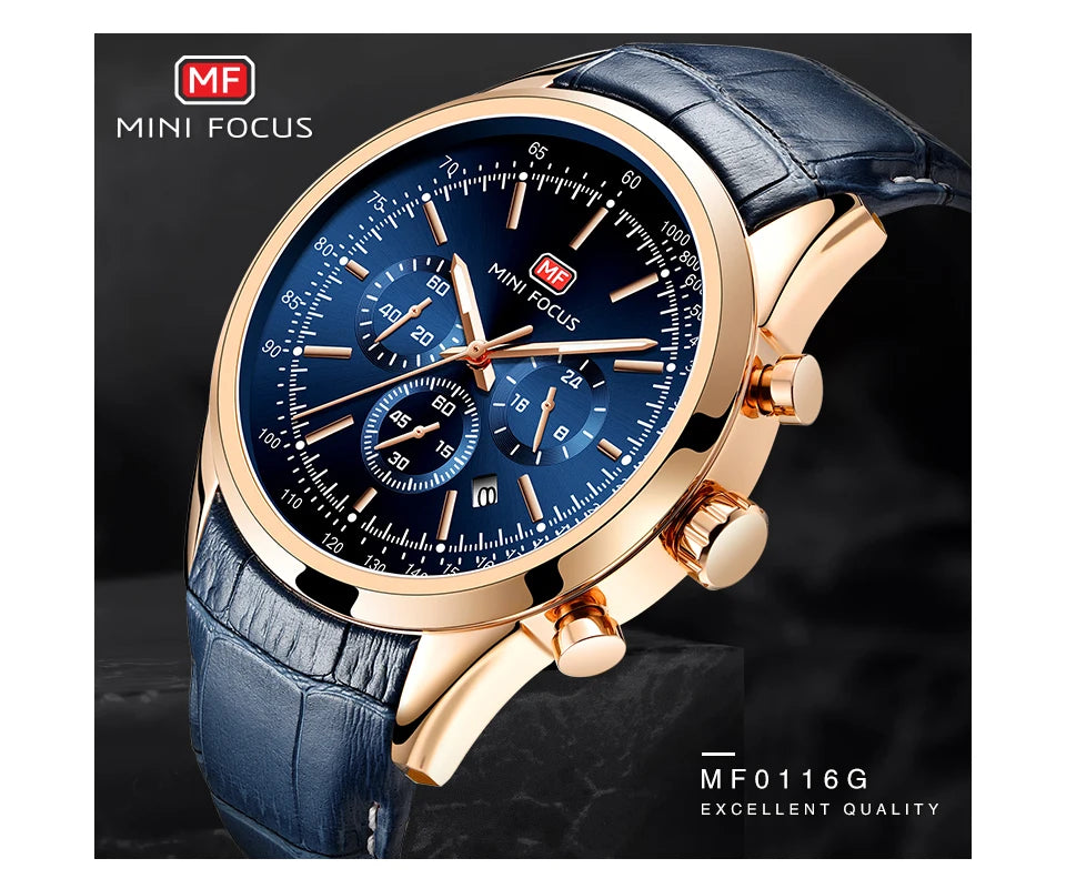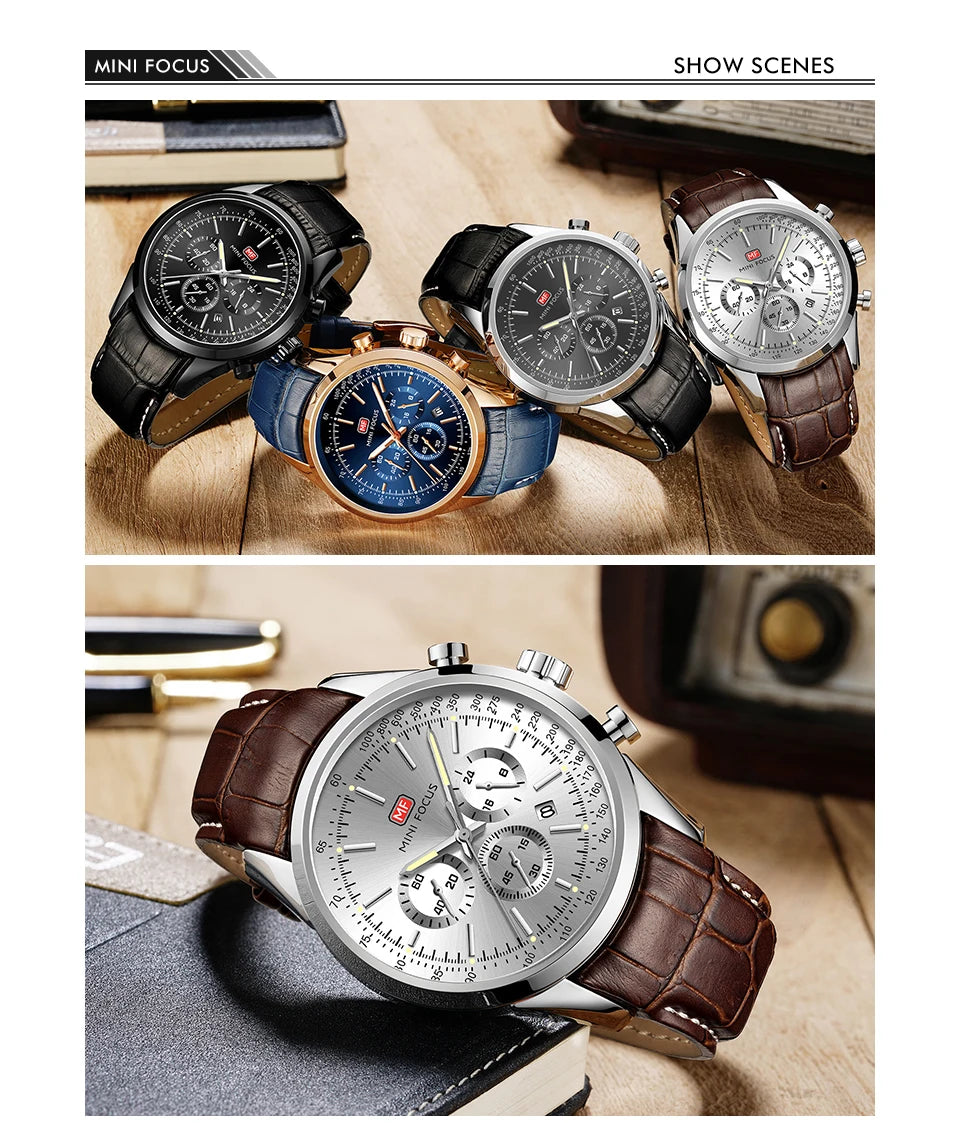 Top Brand Men's Leather Watch Luxury Quartz Watch Casual Business Sport Waterproof Chronograph Wristwatch with Date Display