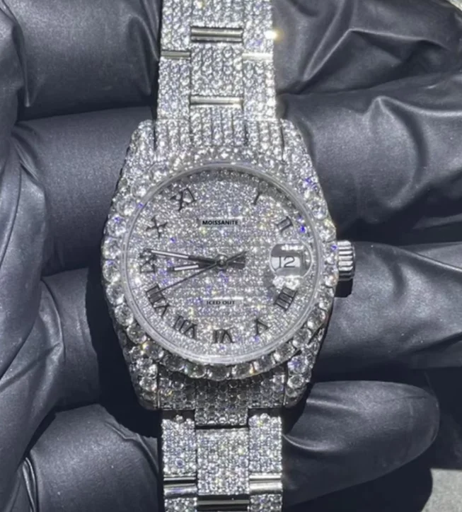 VVS High Quality Luxury Moissanite Watches with Custom Dial Diamond Mechanical Watch Diver Factory Wholesale Hip Hop Style Watch