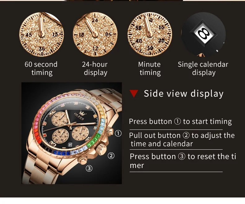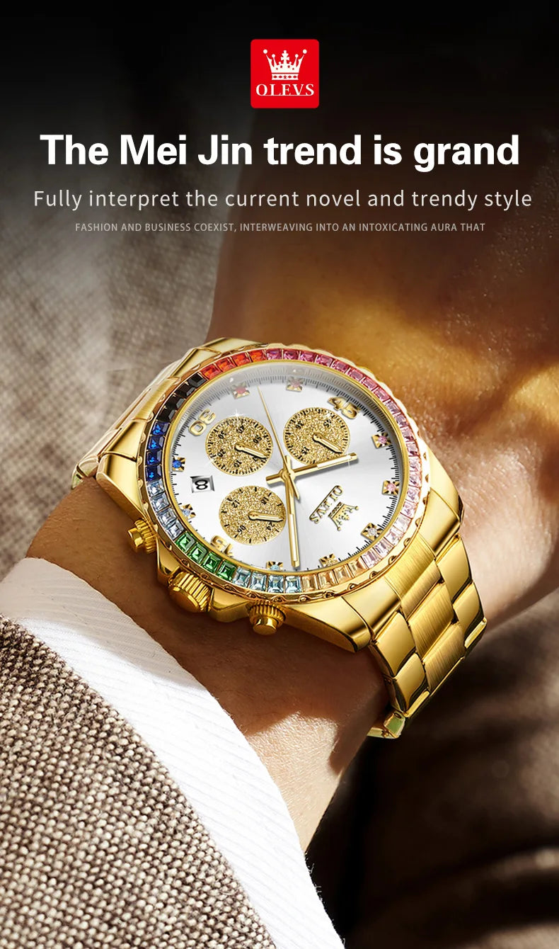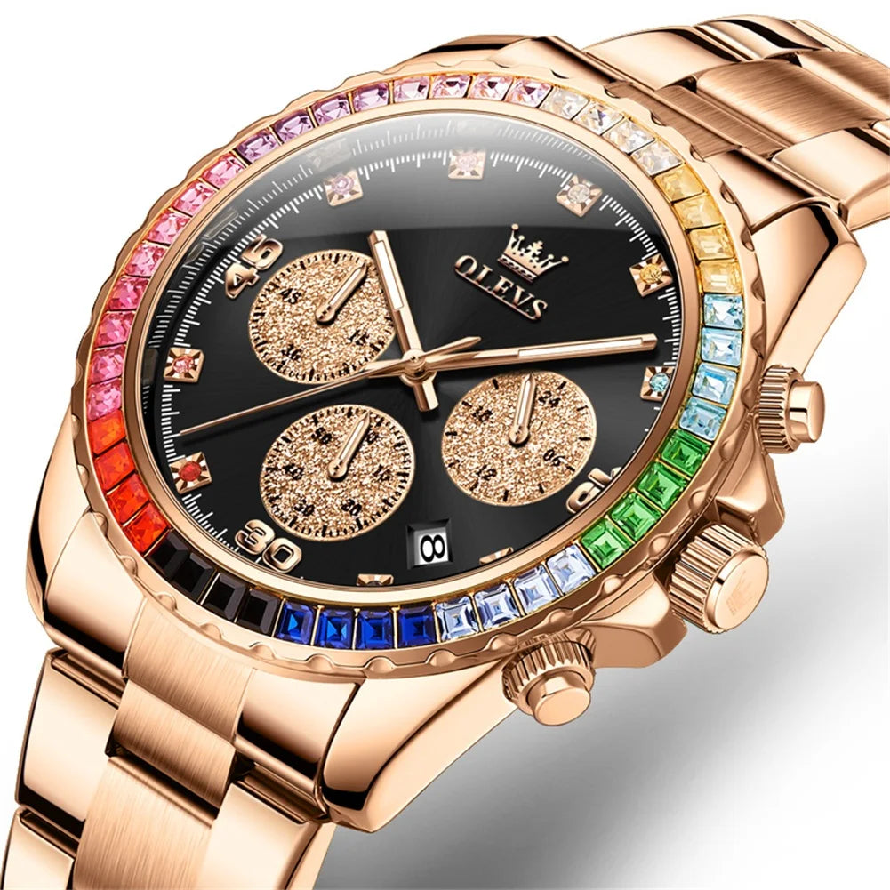 Watches For Men OLEVS Original Rainbow Gem Light Rose Gold Luxury Series Quartz Watch Waterproof Steel Strap Men's Watch New