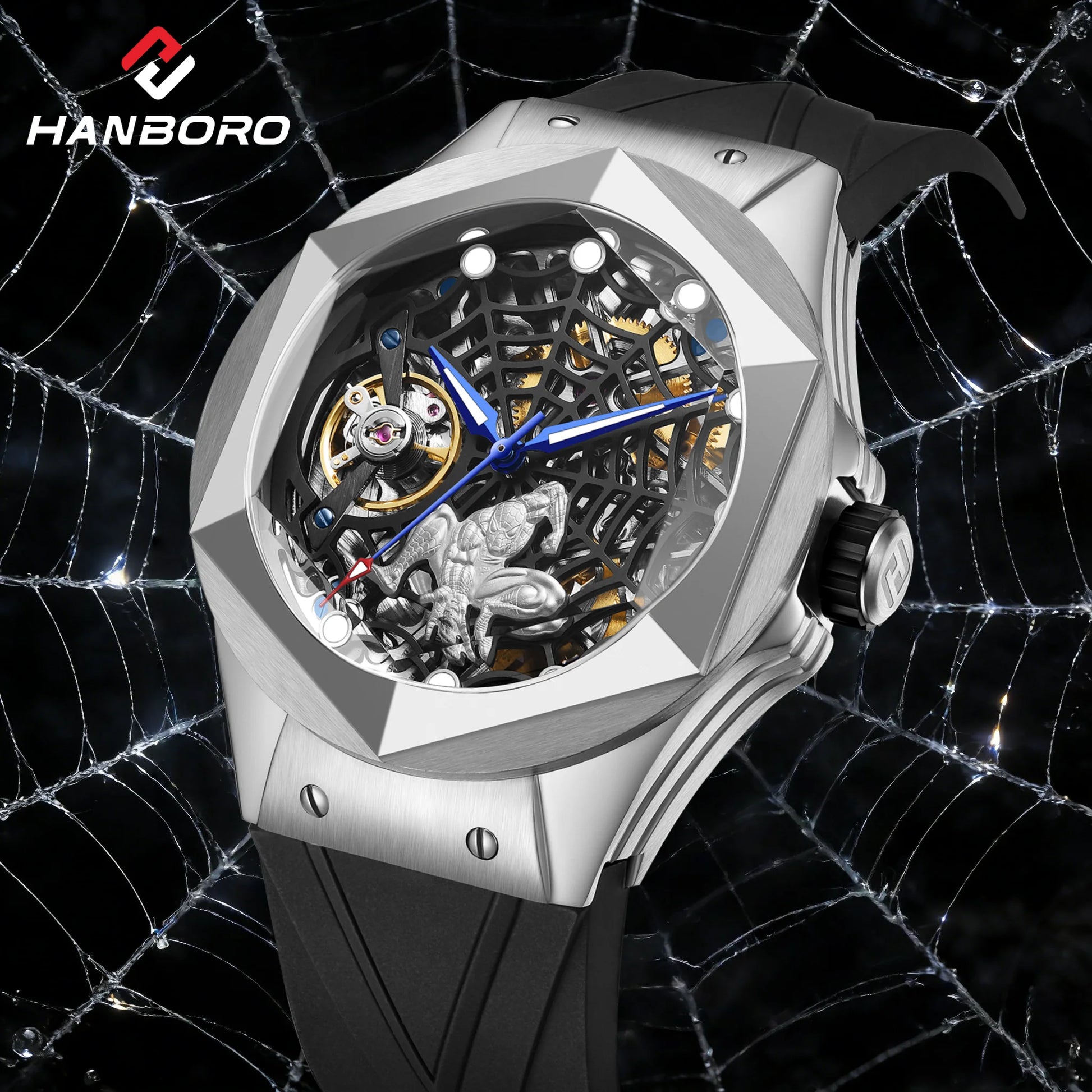 Wholesale Custom Men Trendy Fashion Automatic Watch Sapphire Hollow Flywheel Spider Web Dial Personalized Style Mechanical Watch