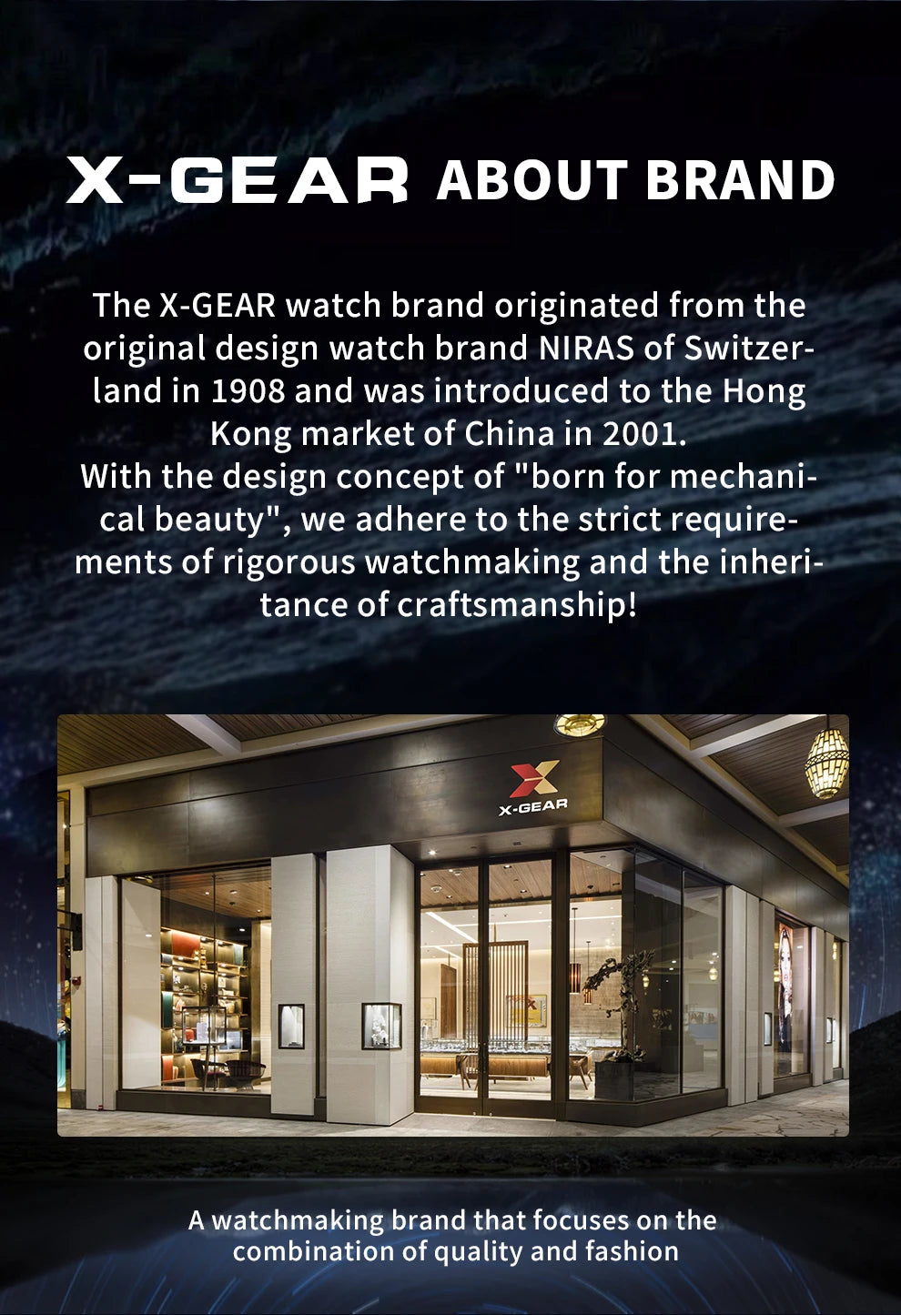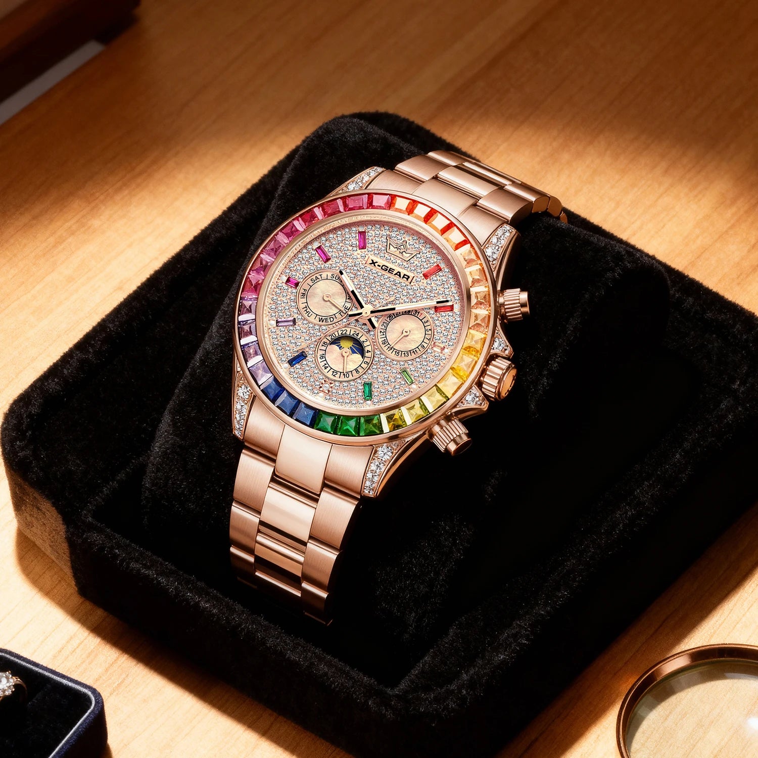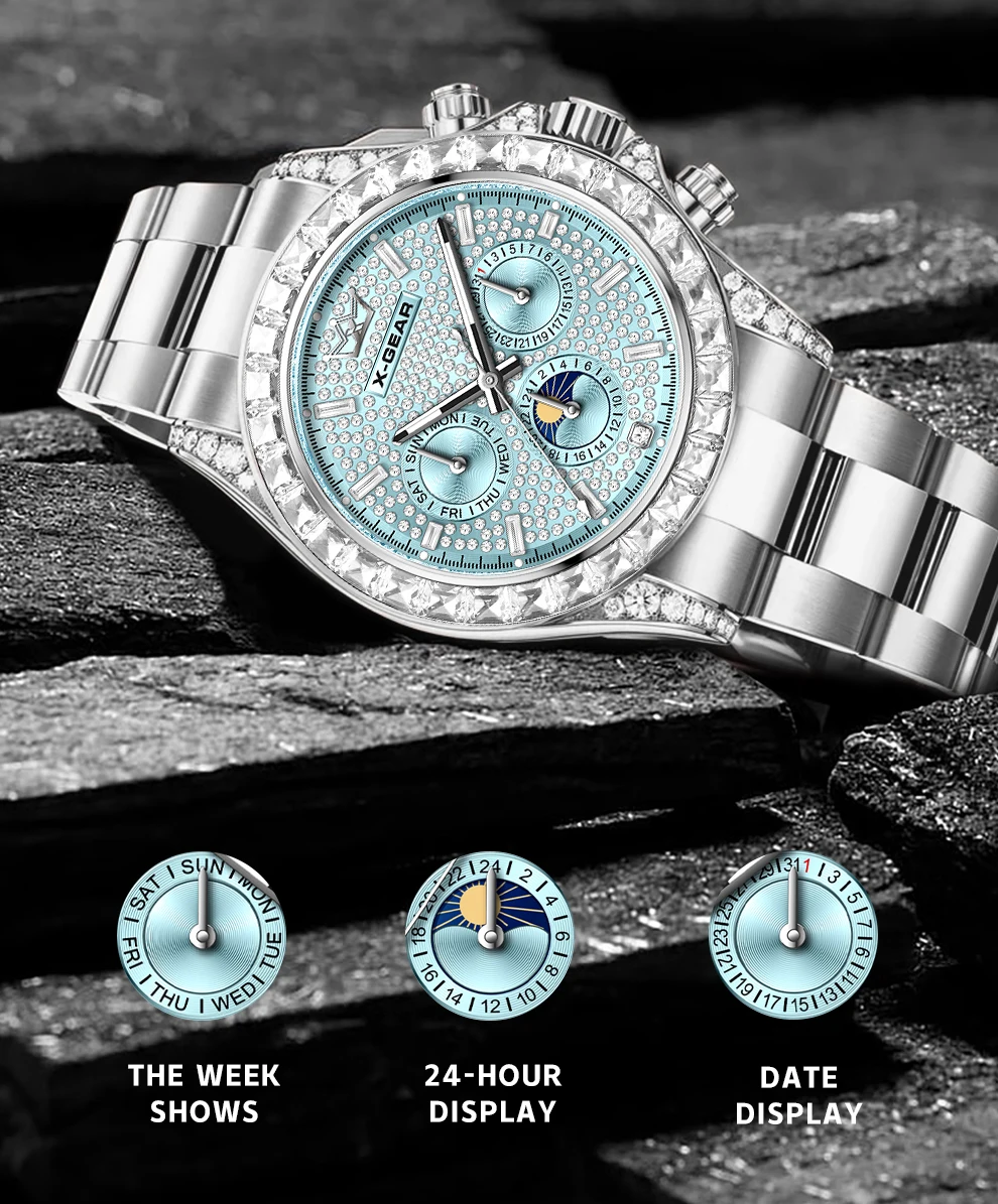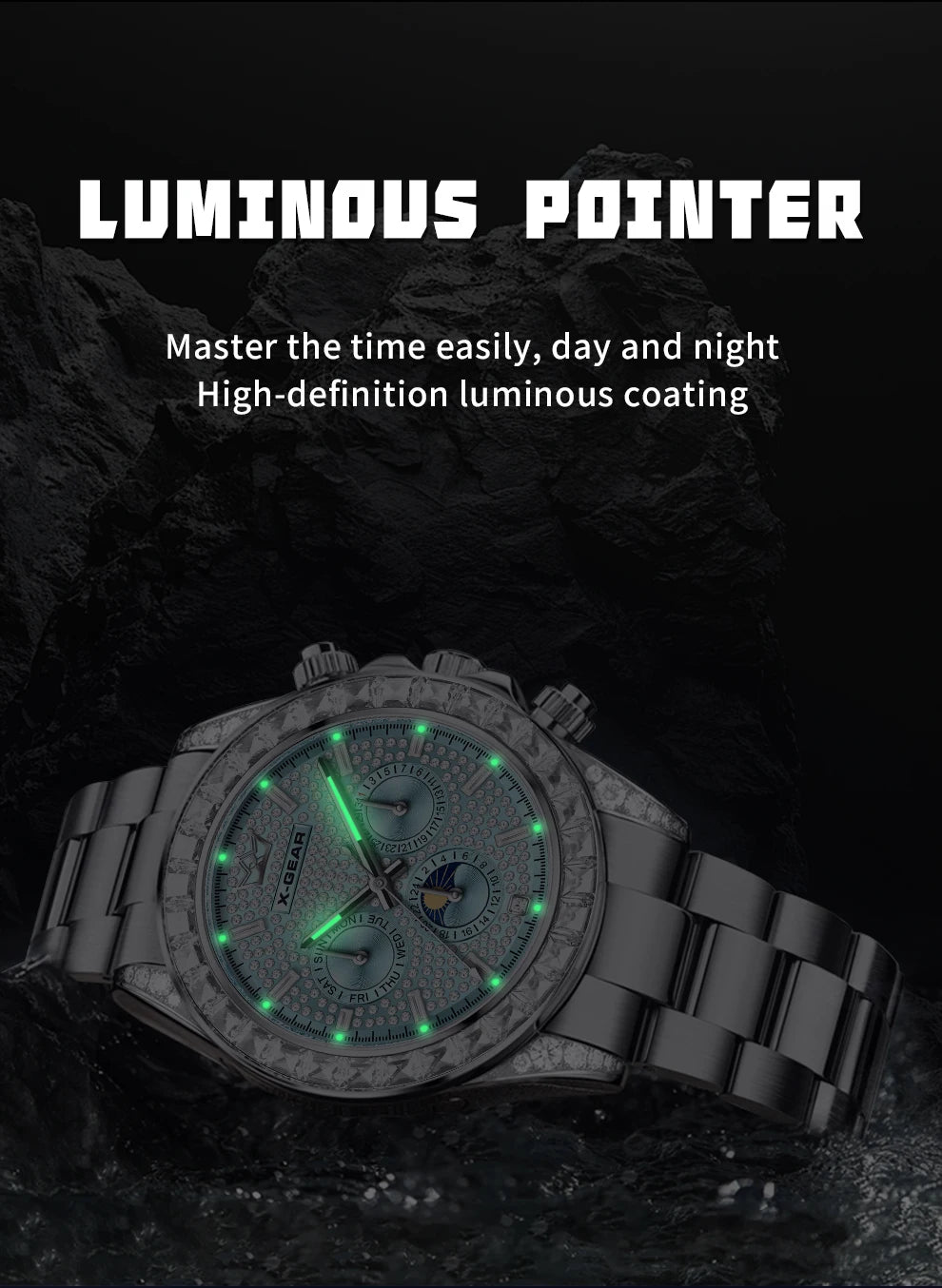 X-GEAR Men's Watch Automatic Mechanical with Diamond Dial Luminous Moon Phase Water-Resistant (Gift)